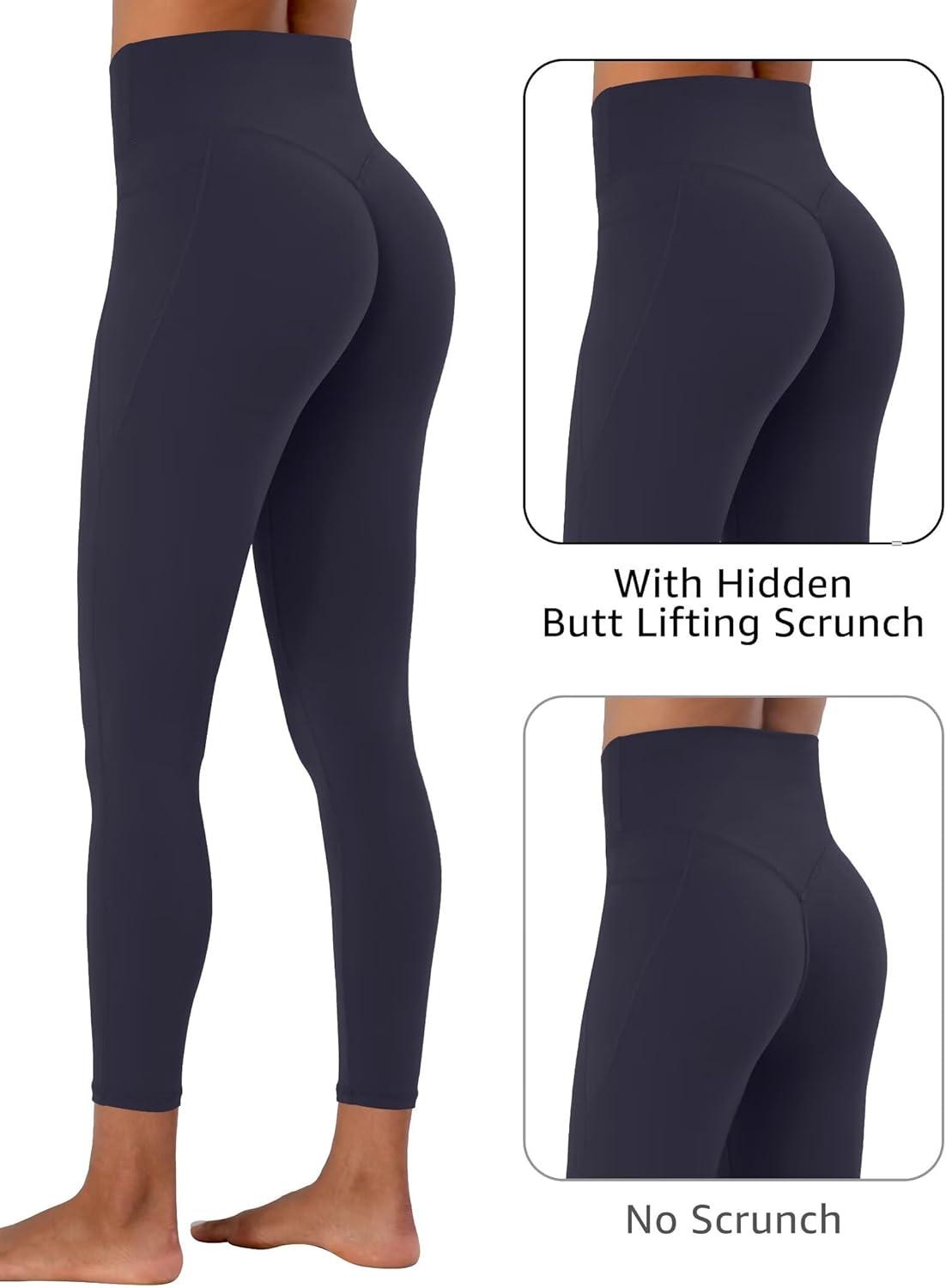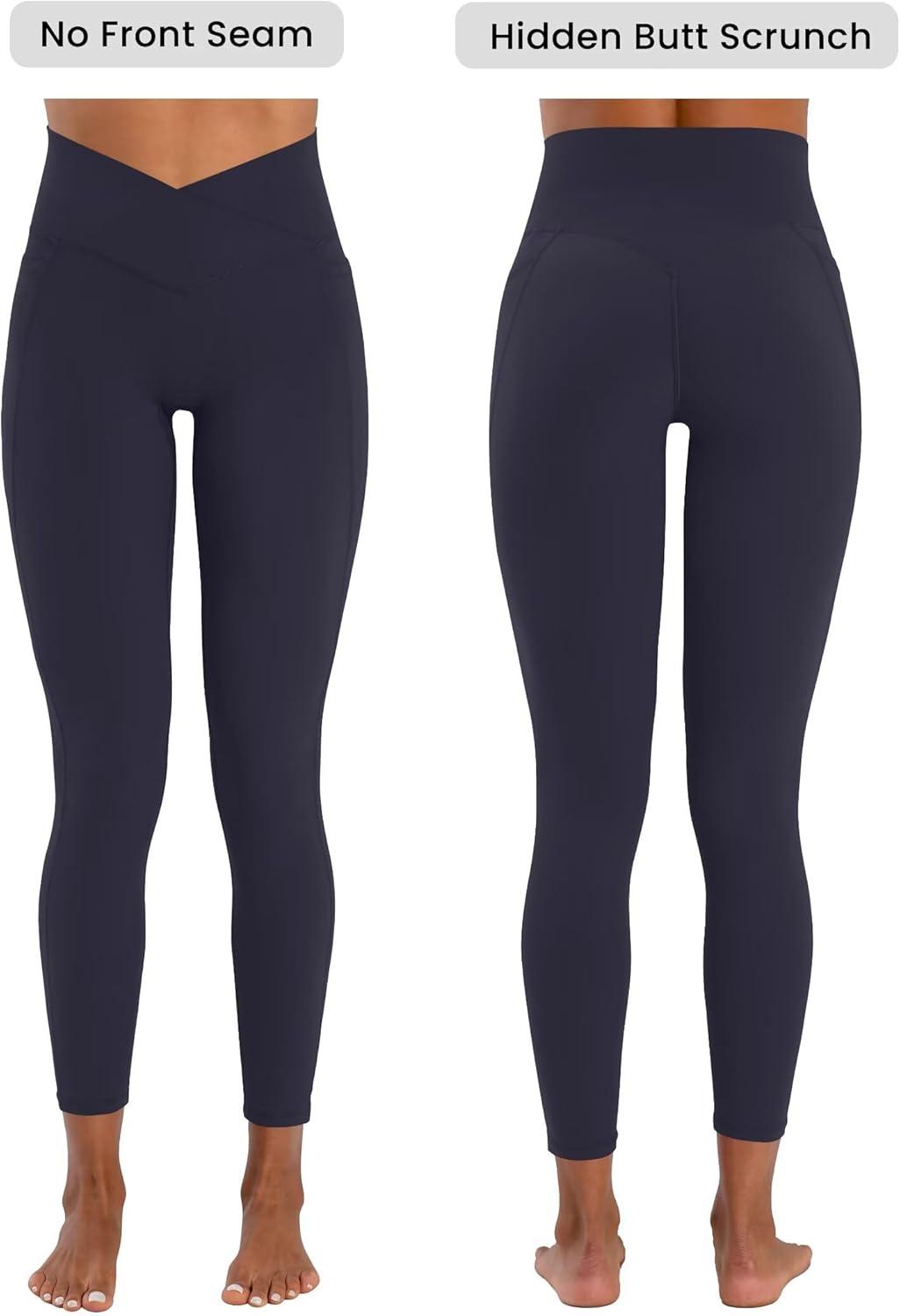 Sunzel Butt Lifting Scrunch Leggings for Women with Pockets No Front Seam Crossover Workout Booty Yoga Pants Tummy Control(Charcoal Gray)