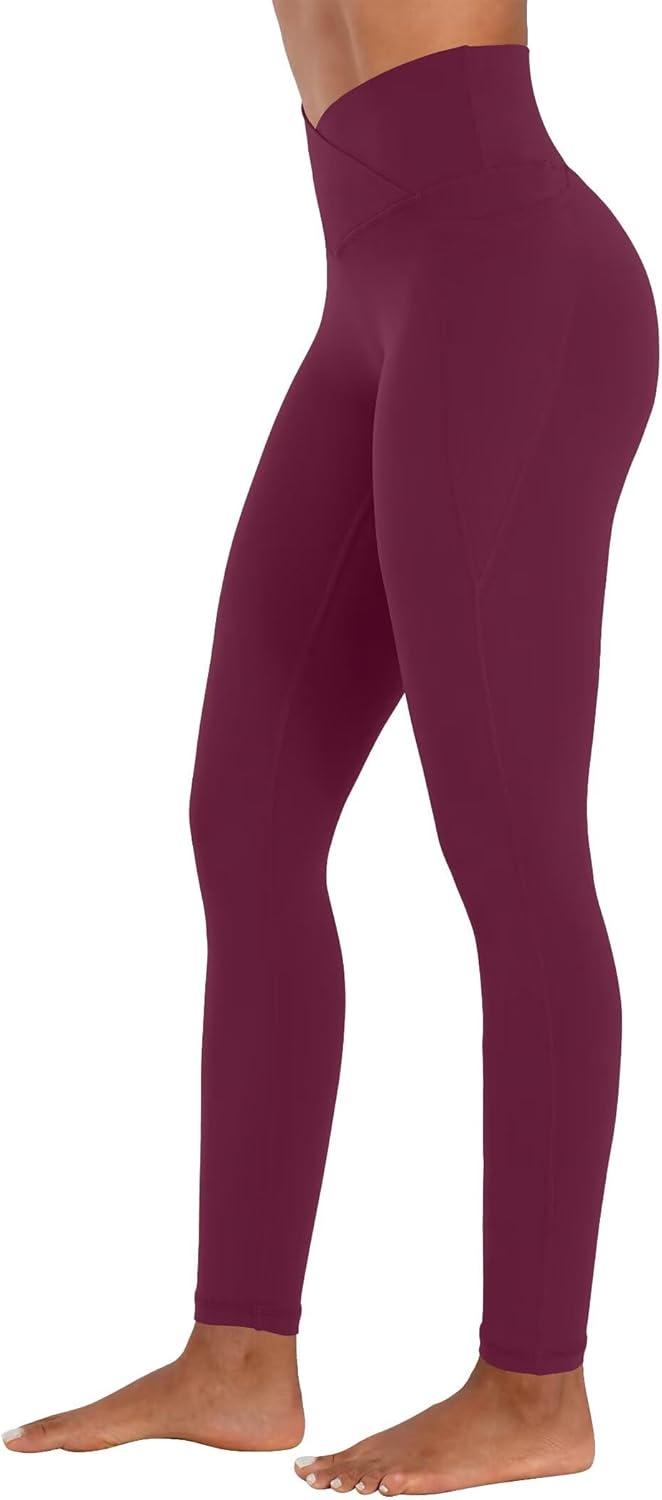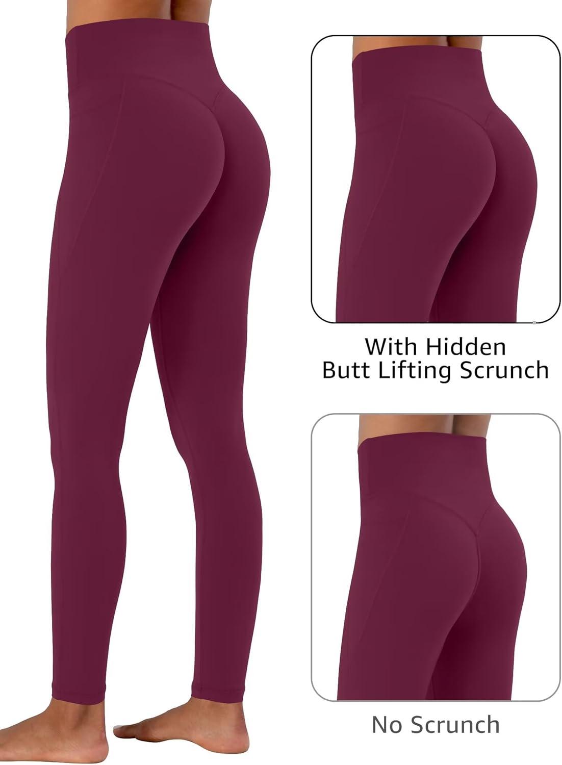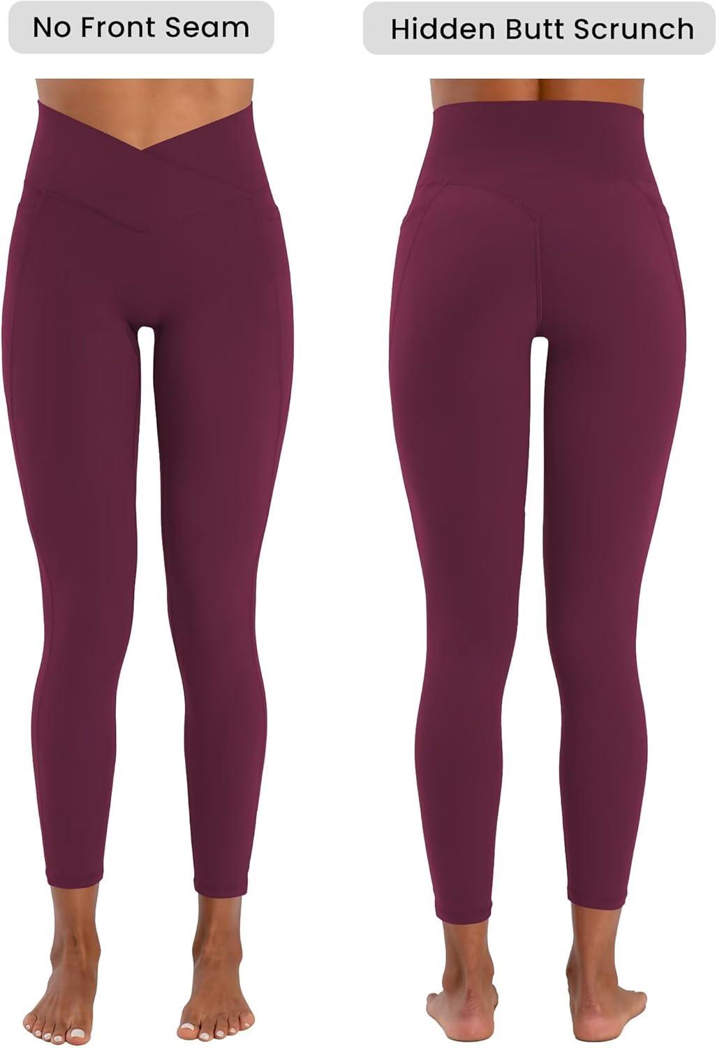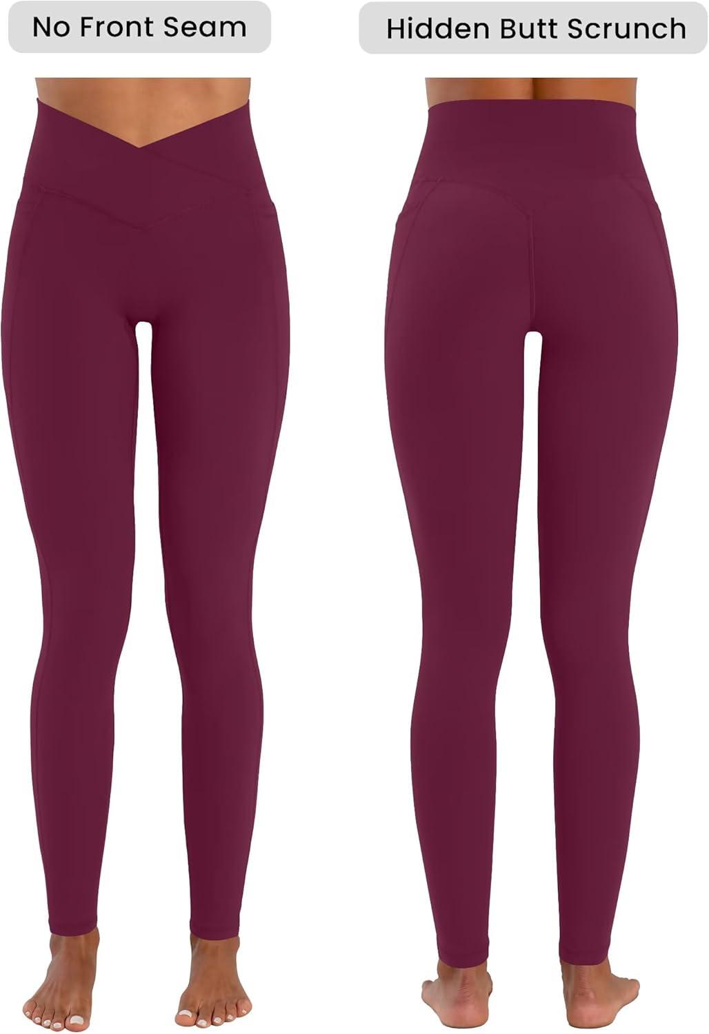 Sunzel Butt Lifting Scrunch Leggings for Women with Pockets No Front Seam Crossover Workout Booty Yoga Pants Tummy Control(Cherry Red)