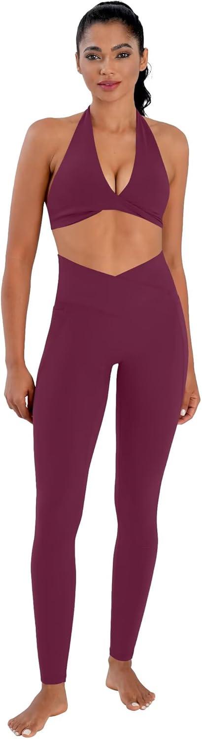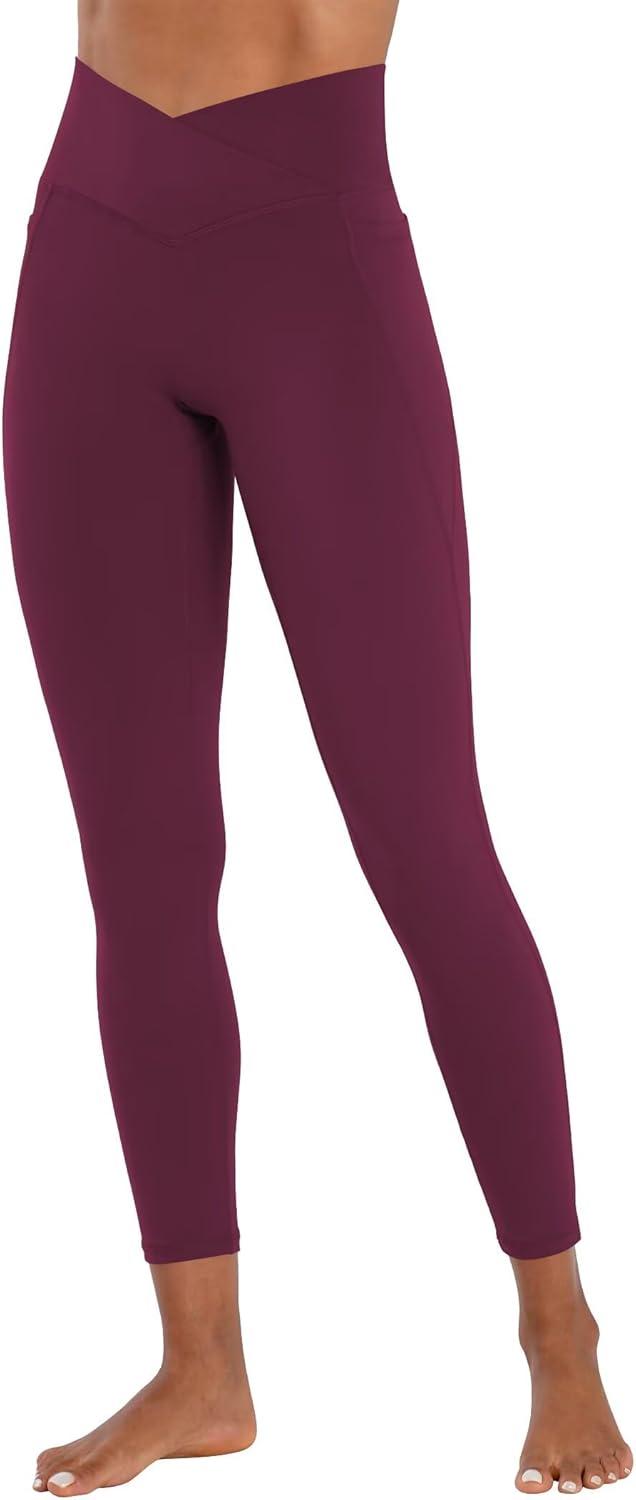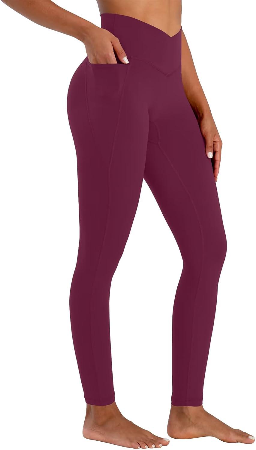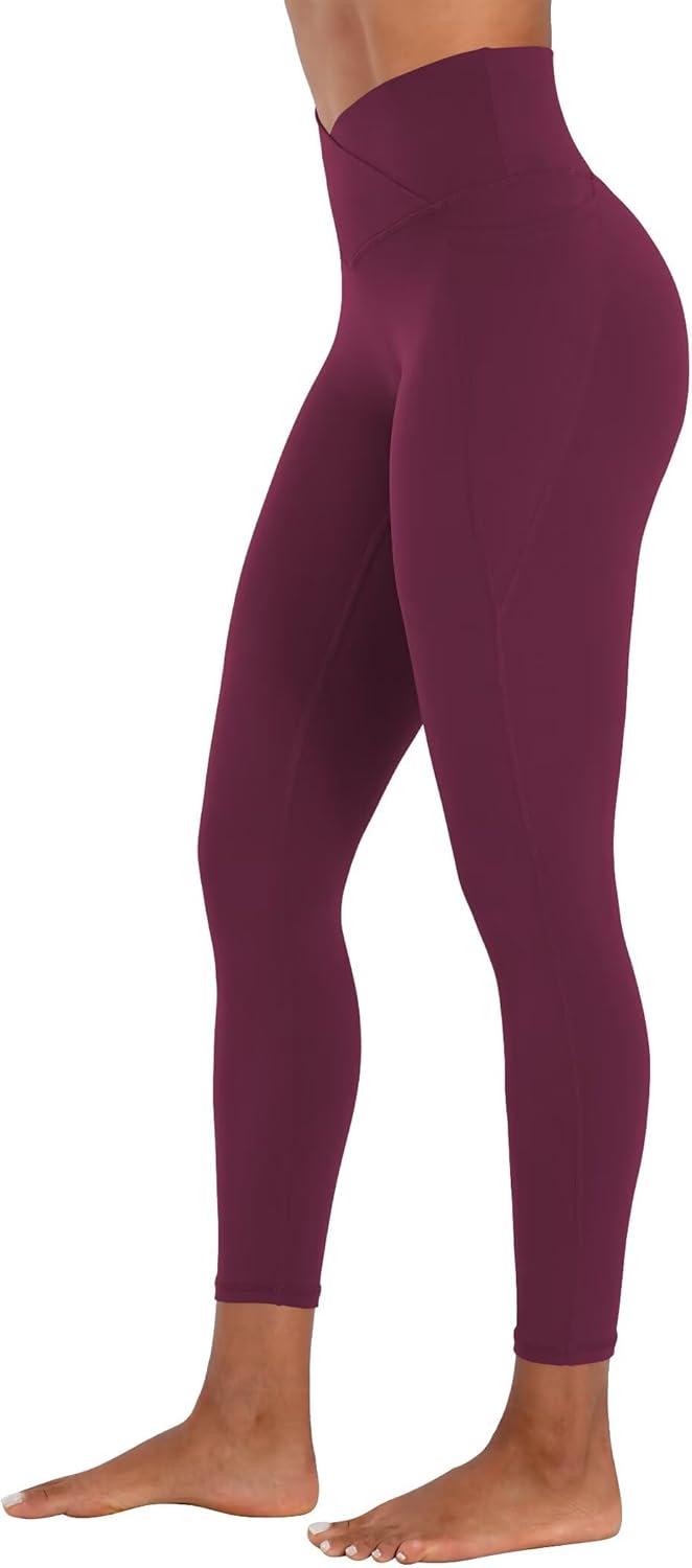 Sunzel Butt Lifting Scrunch Leggings for Women with Pockets No Front Seam Crossover Workout Booty Yoga Pants Tummy Control(Cherry Red)