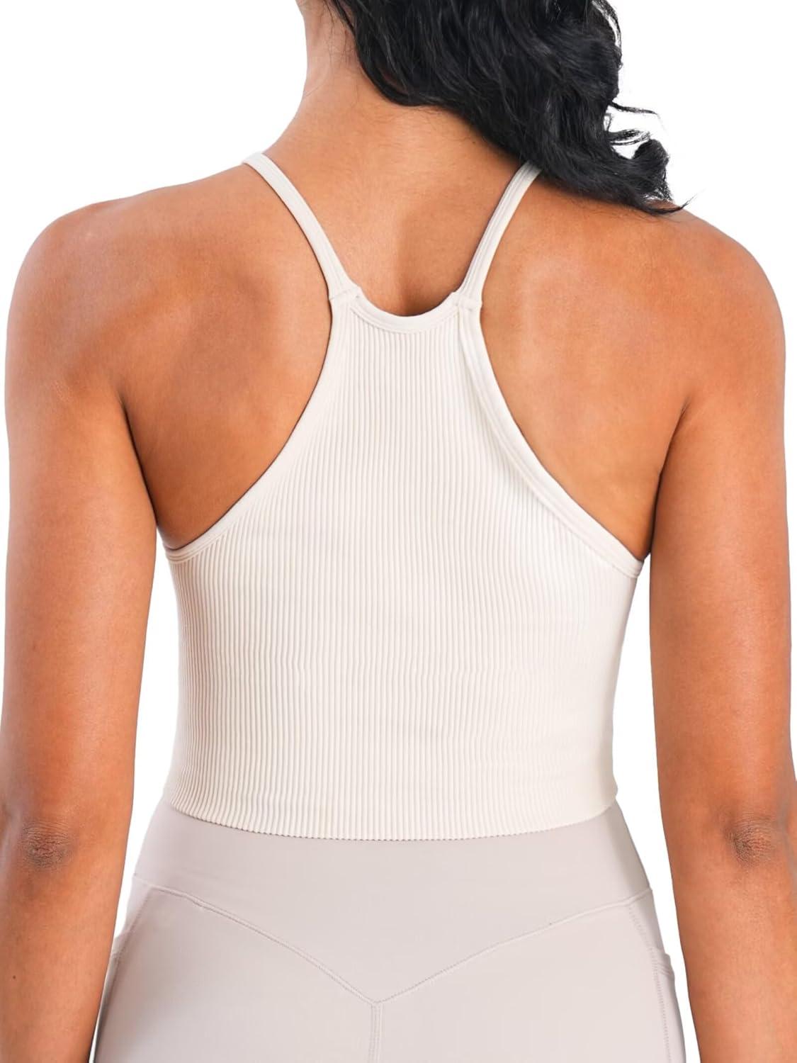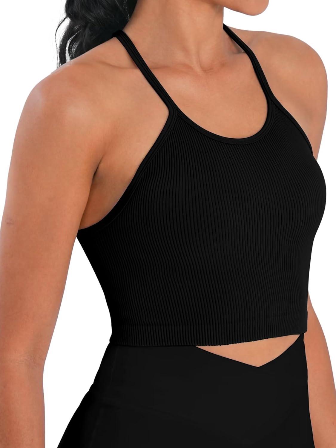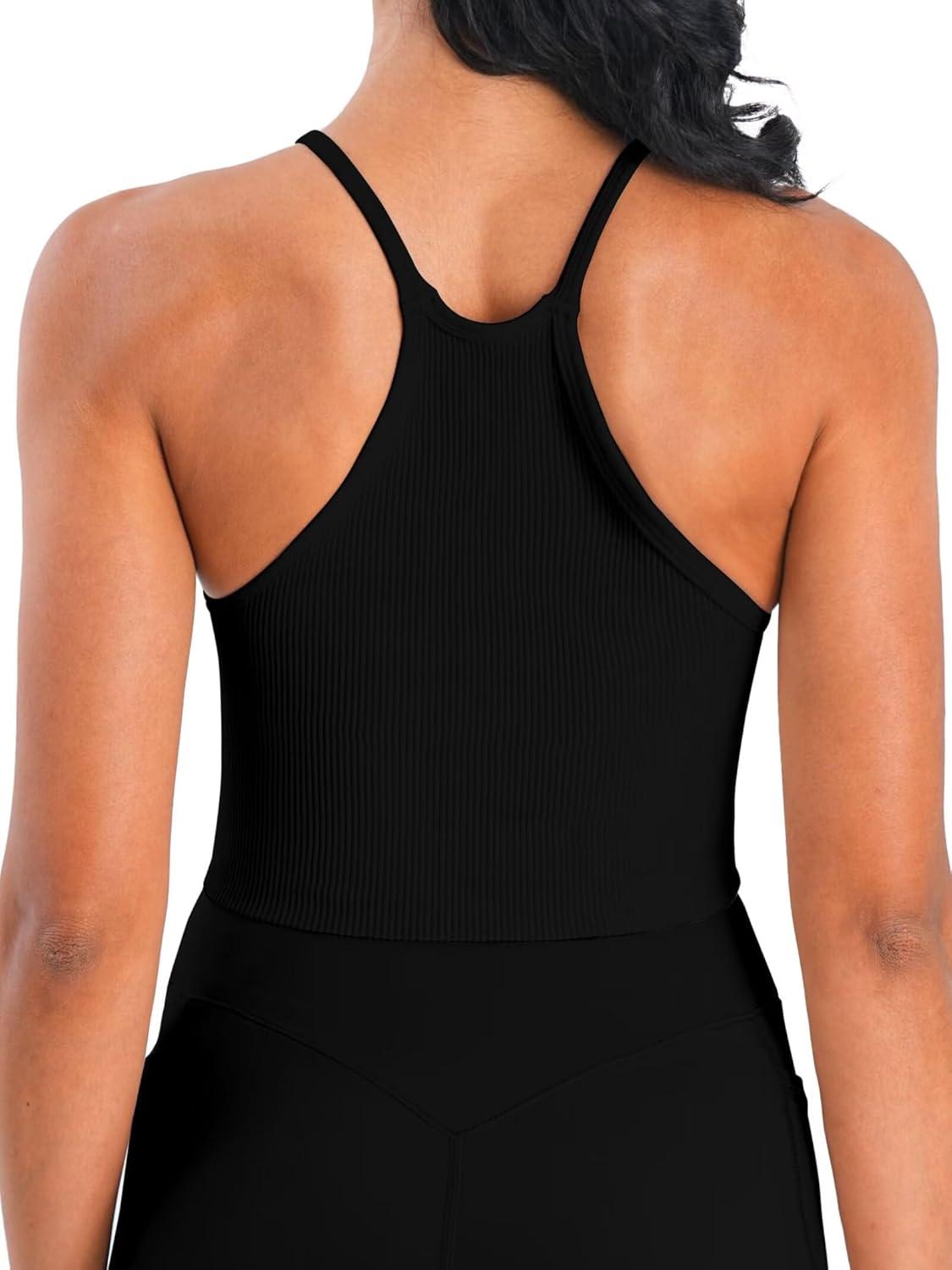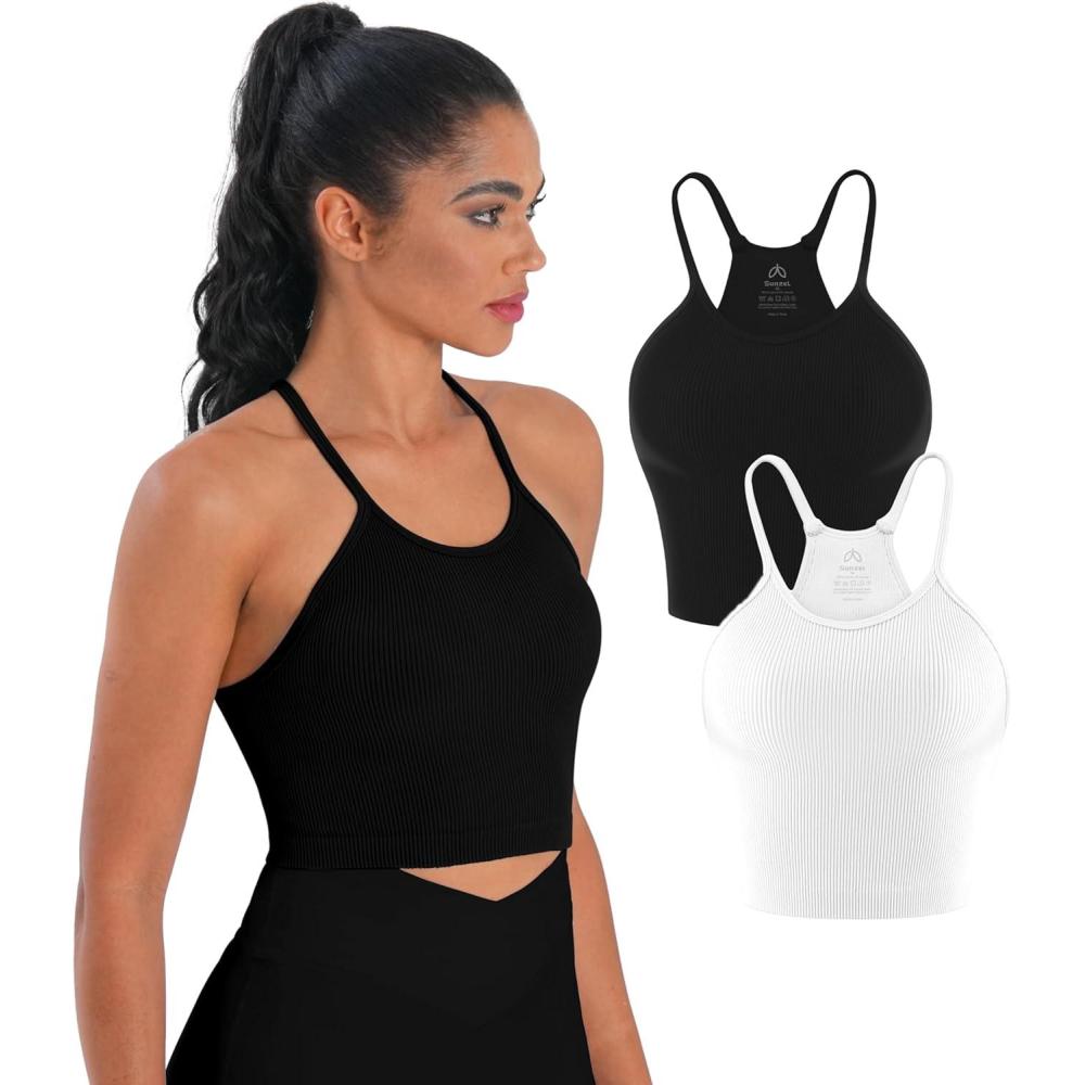 Sunzel Free to Be Tank, Crop Ribbed Tank Tops Seamless Racerback Camisoles No pad Camis Cropped Workout Gym Yoga(Ebony White(2pcs)-crop)