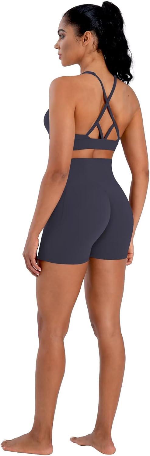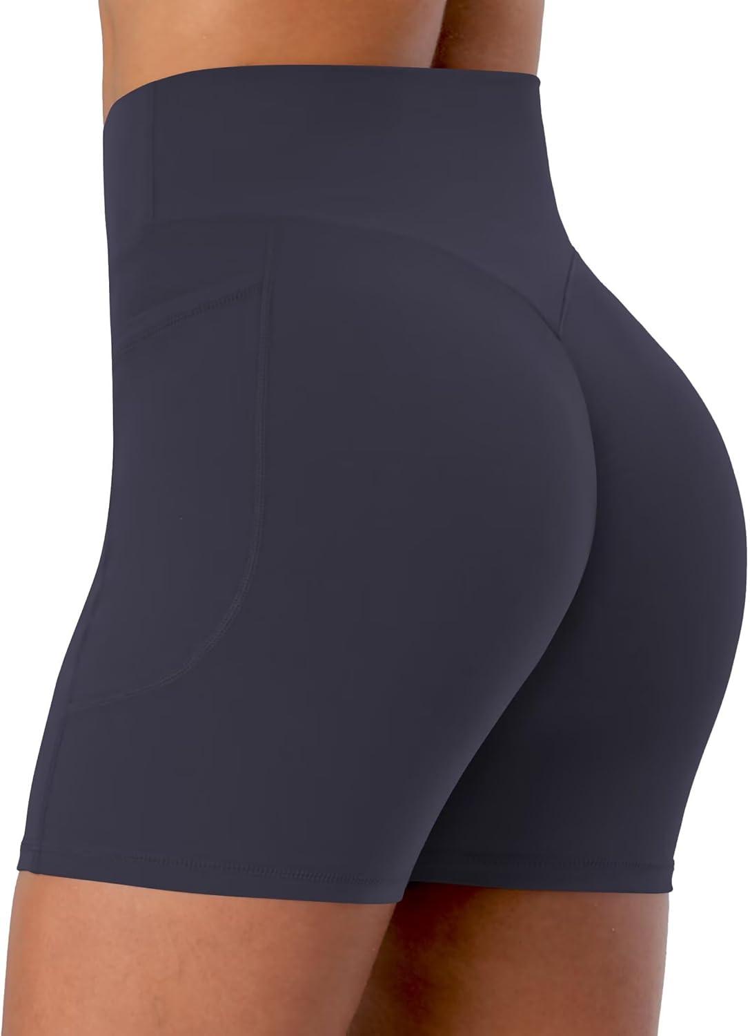 Sunzel Hidden Butt Lifting Scrunch Biker Shorts Women with Pockets Crossover High Waist Yoga Gym Workout Tummy Control Shorts(Ash Blue)