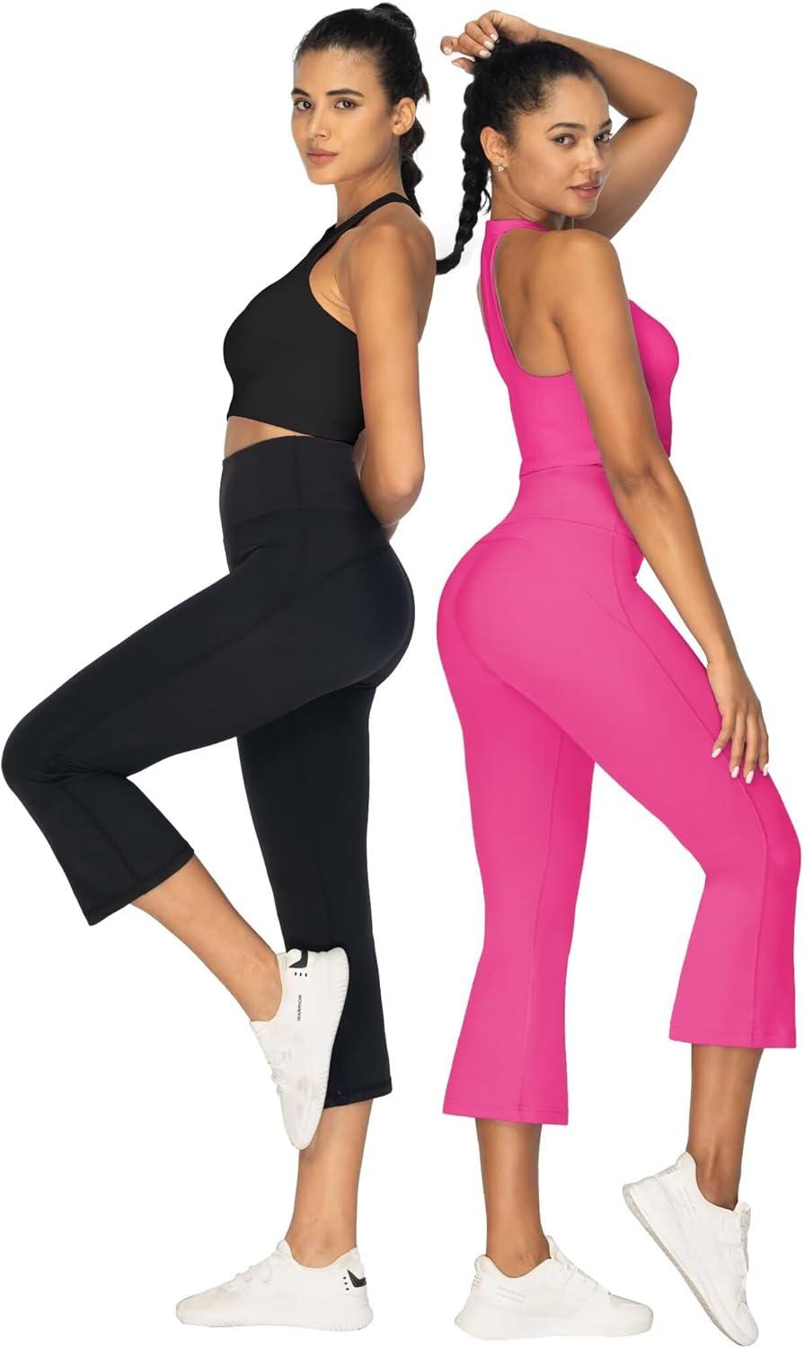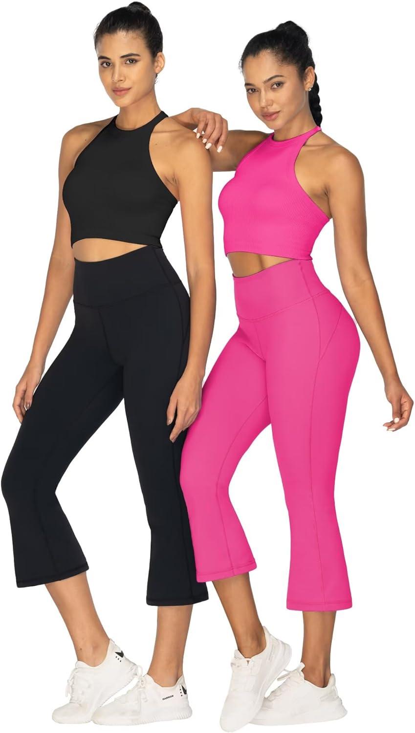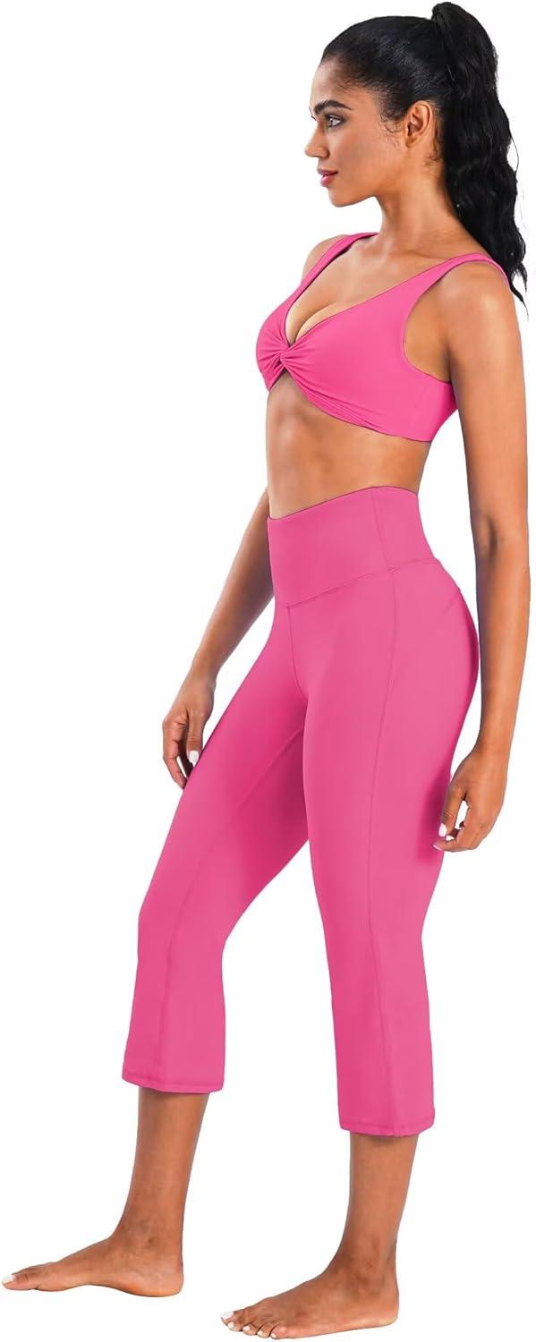 Sunzel High Waist Mini Flared Leggings for Women, Tummy Control Casual Flare Yoga Pants for Yoga Workout Gym(Hot Pink)