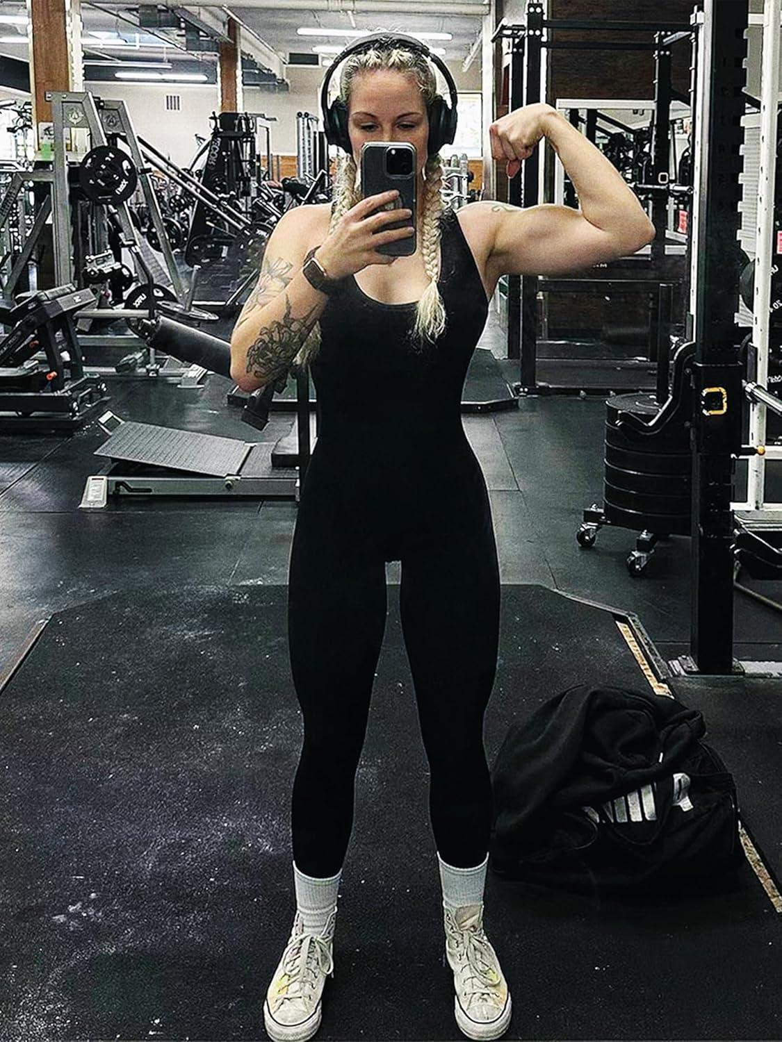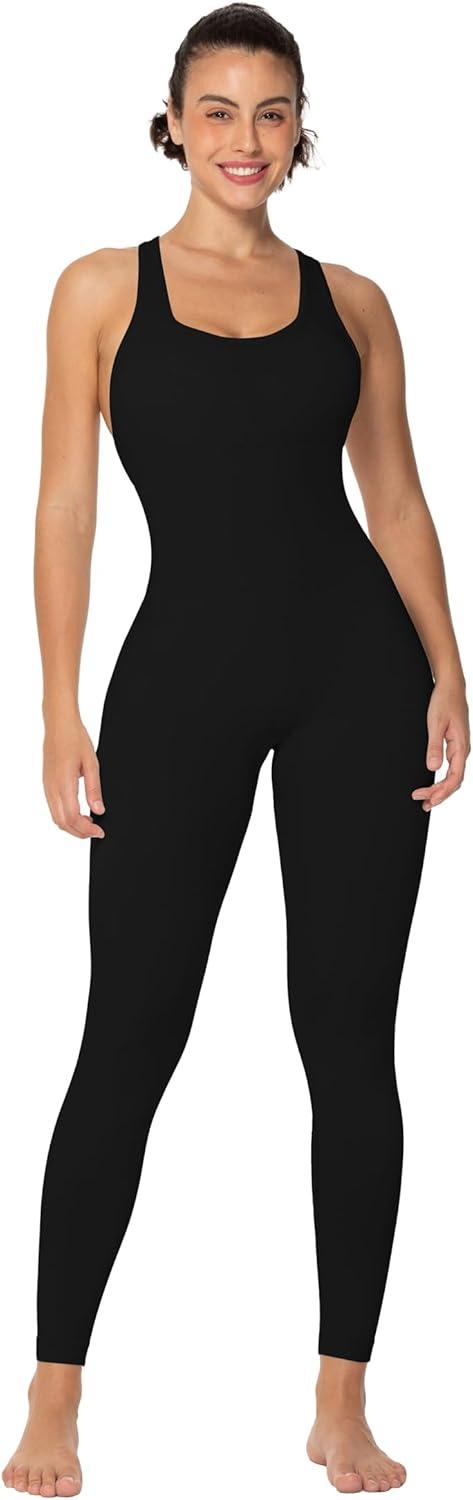 Sunzel Jumpsuits for Women Backless, Seamless Workout One Piece Bodycon Bodysuits, Butt Scrunch Leggings Unitard(Black)