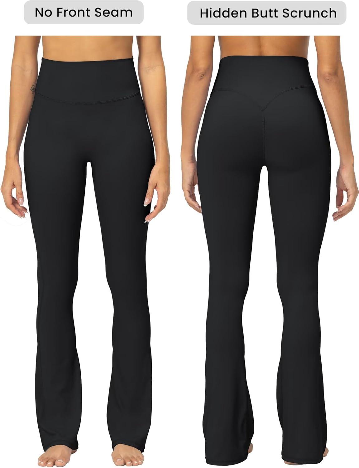 Sunzel No Front Seam Mini Flare Leggings for Women, Invisible Butt Scrunch Flared Yoga Pants with Tummy Control(Black)