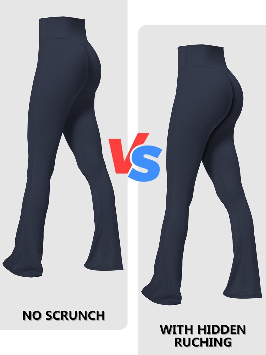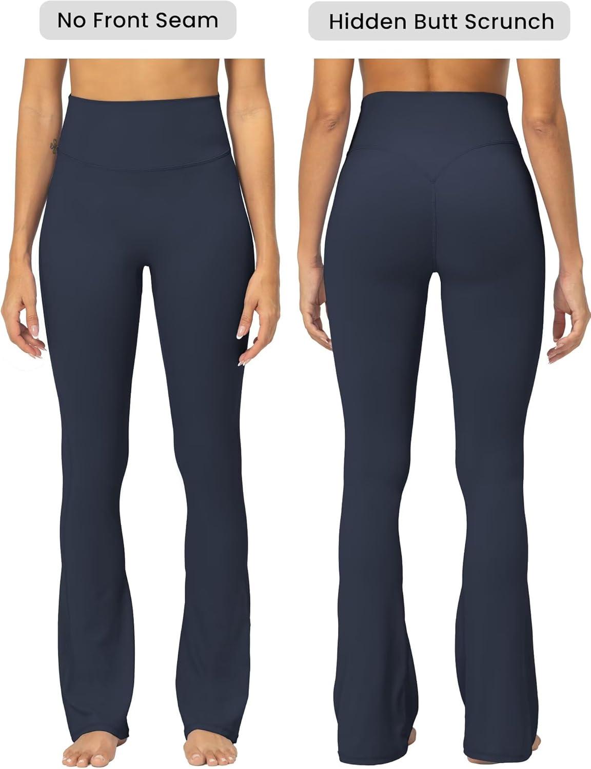 Sunzel No Front Seam Mini Flare Leggings for Women, Invisible Butt Scrunch Flared Yoga Pants with Tummy Control(Classic Blue)