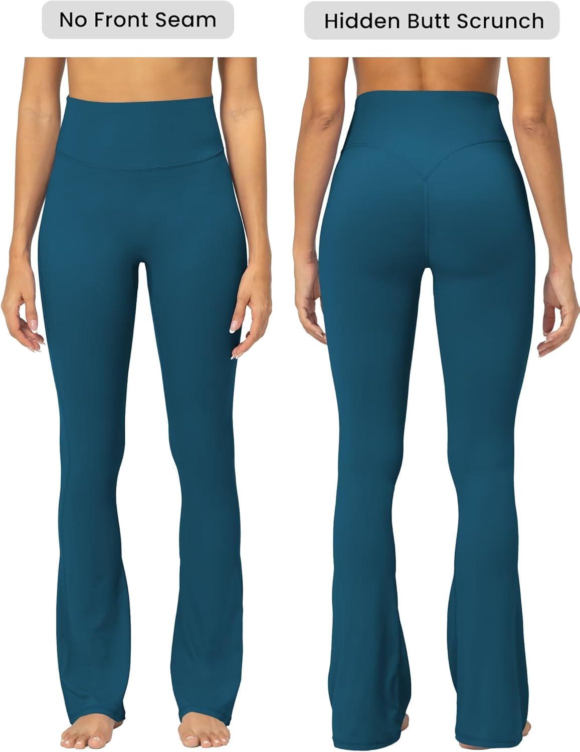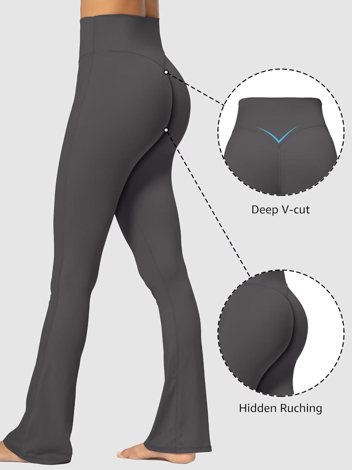 Sunzel No Front Seam Mini Flare Leggings for Women, Invisible Butt Scrunch Flared Yoga Pants with Tummy Control(Ash Blue)