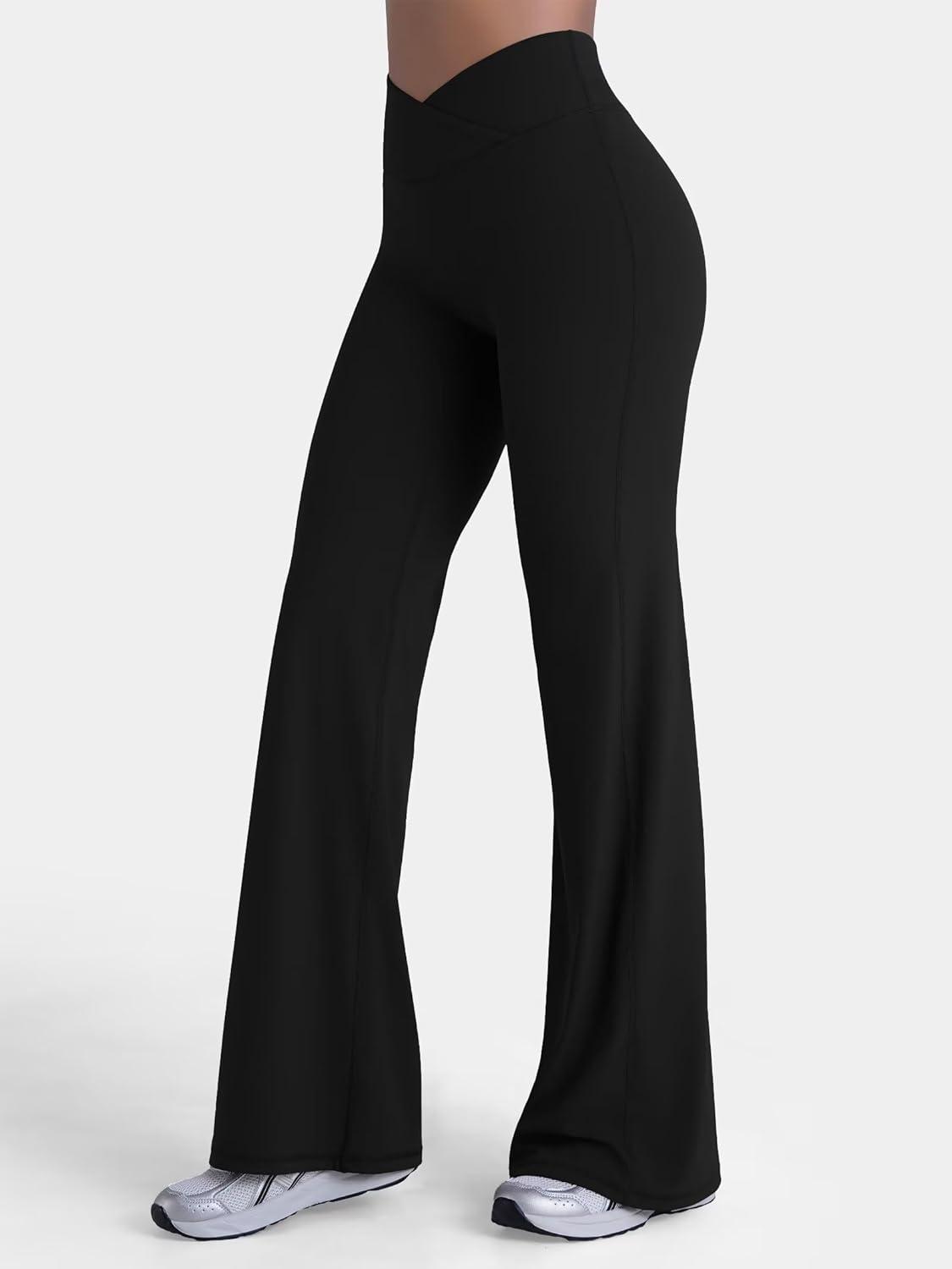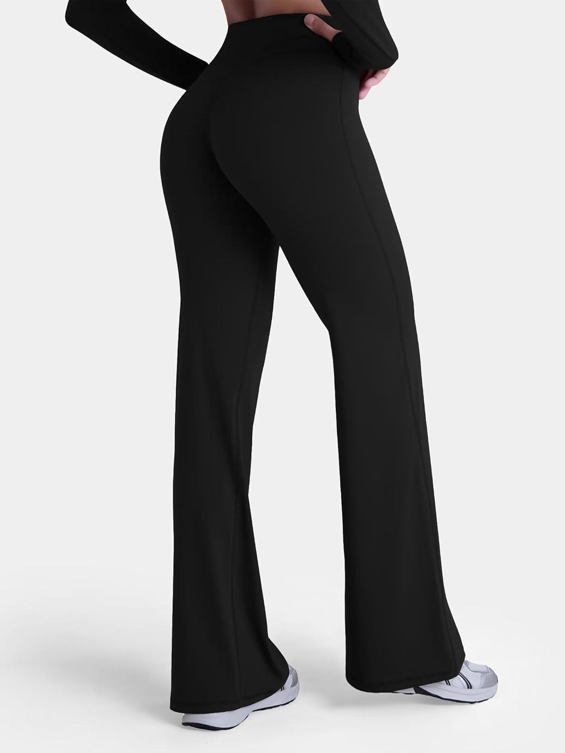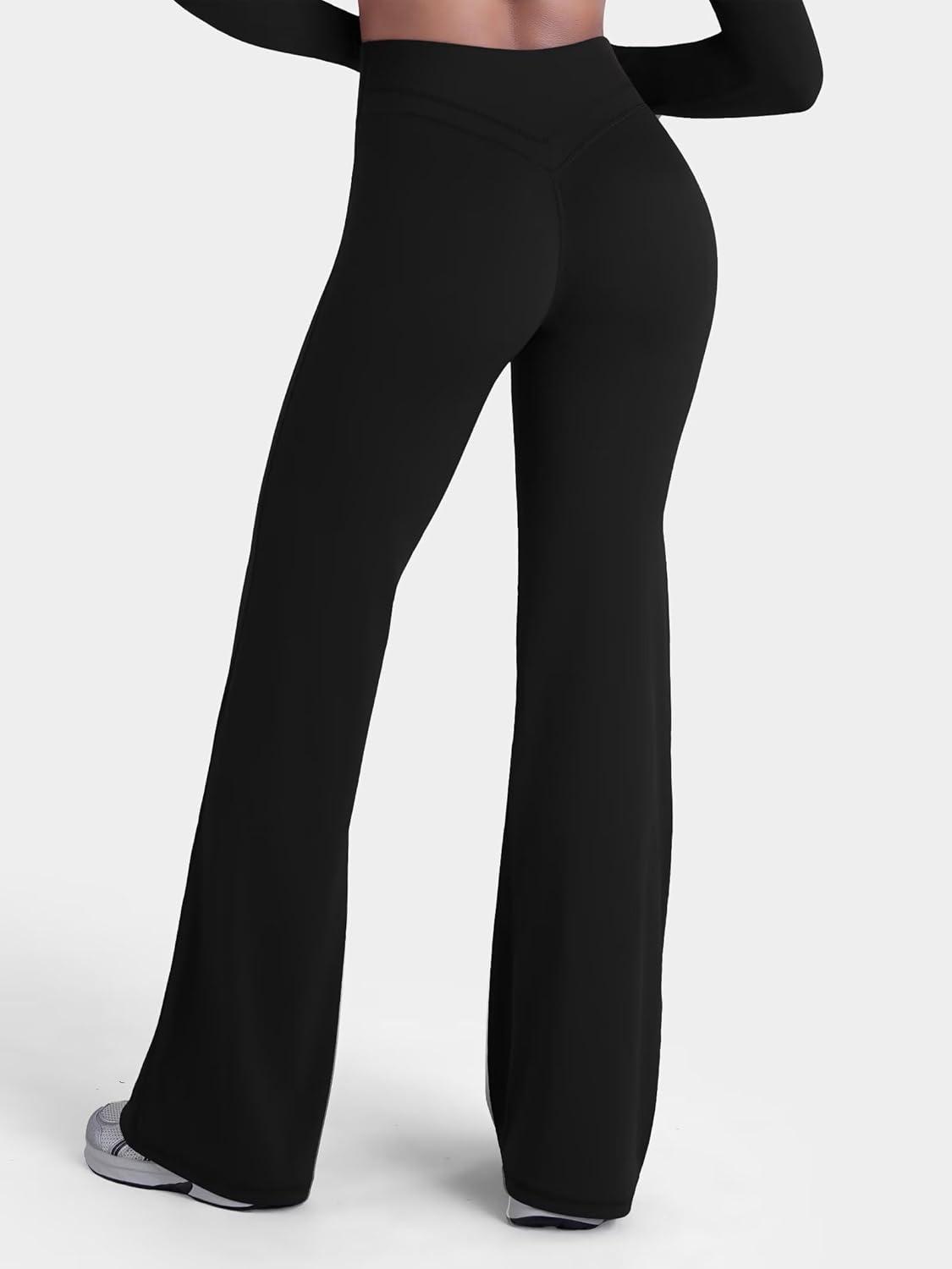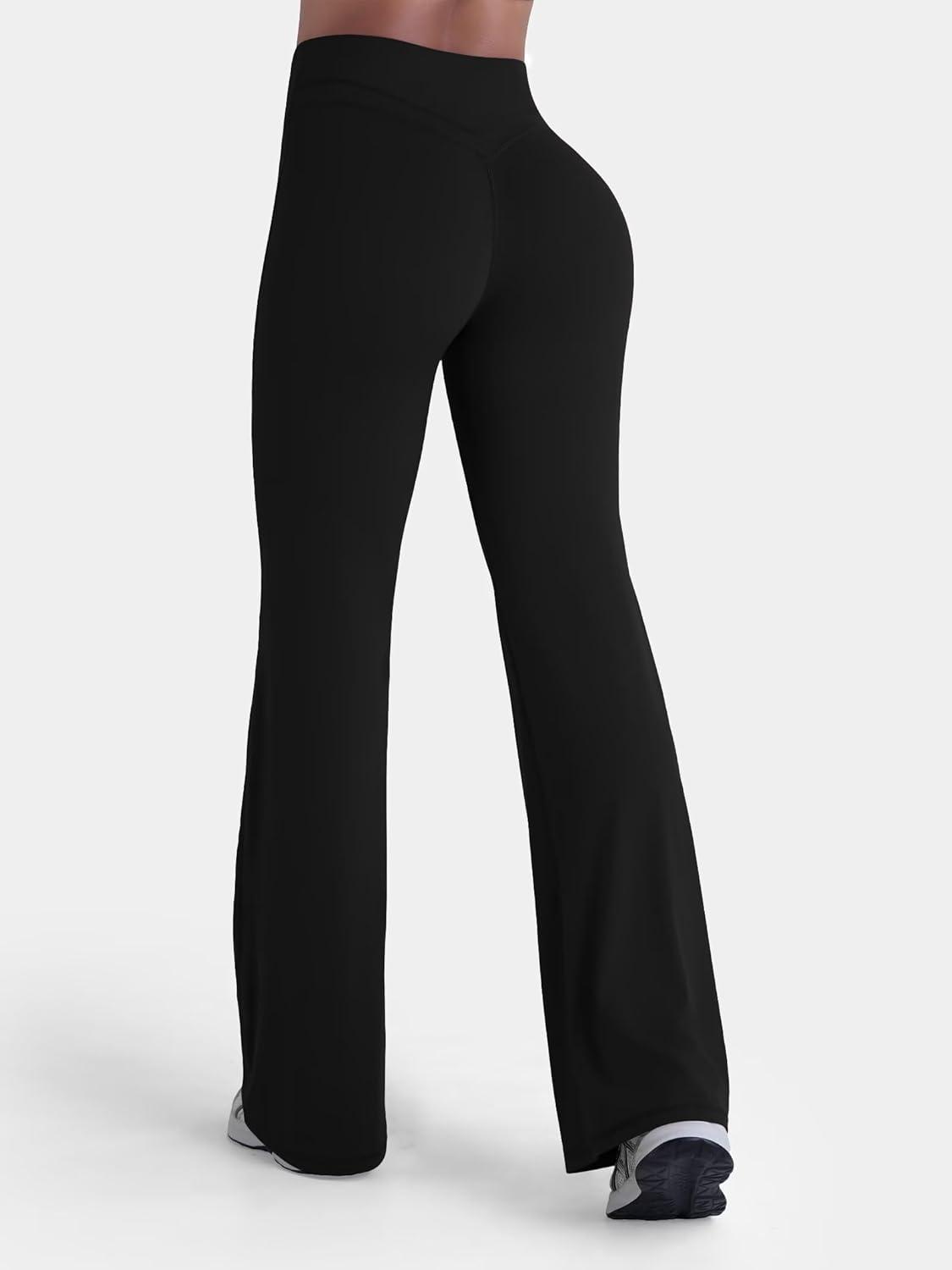 Sunzel Women Hidden Butt Lift Flare Yoga Pants No Front Seam V Crossover High Waist Flare Leg Lounge Workout Flared Leggings(Black)
