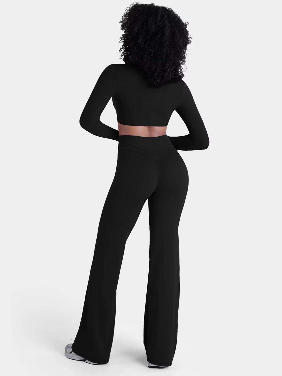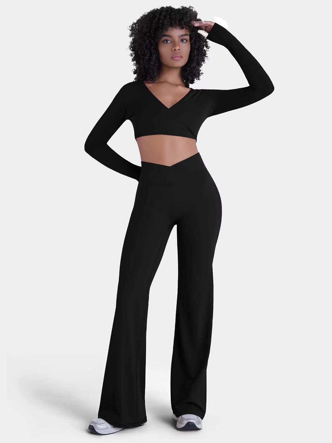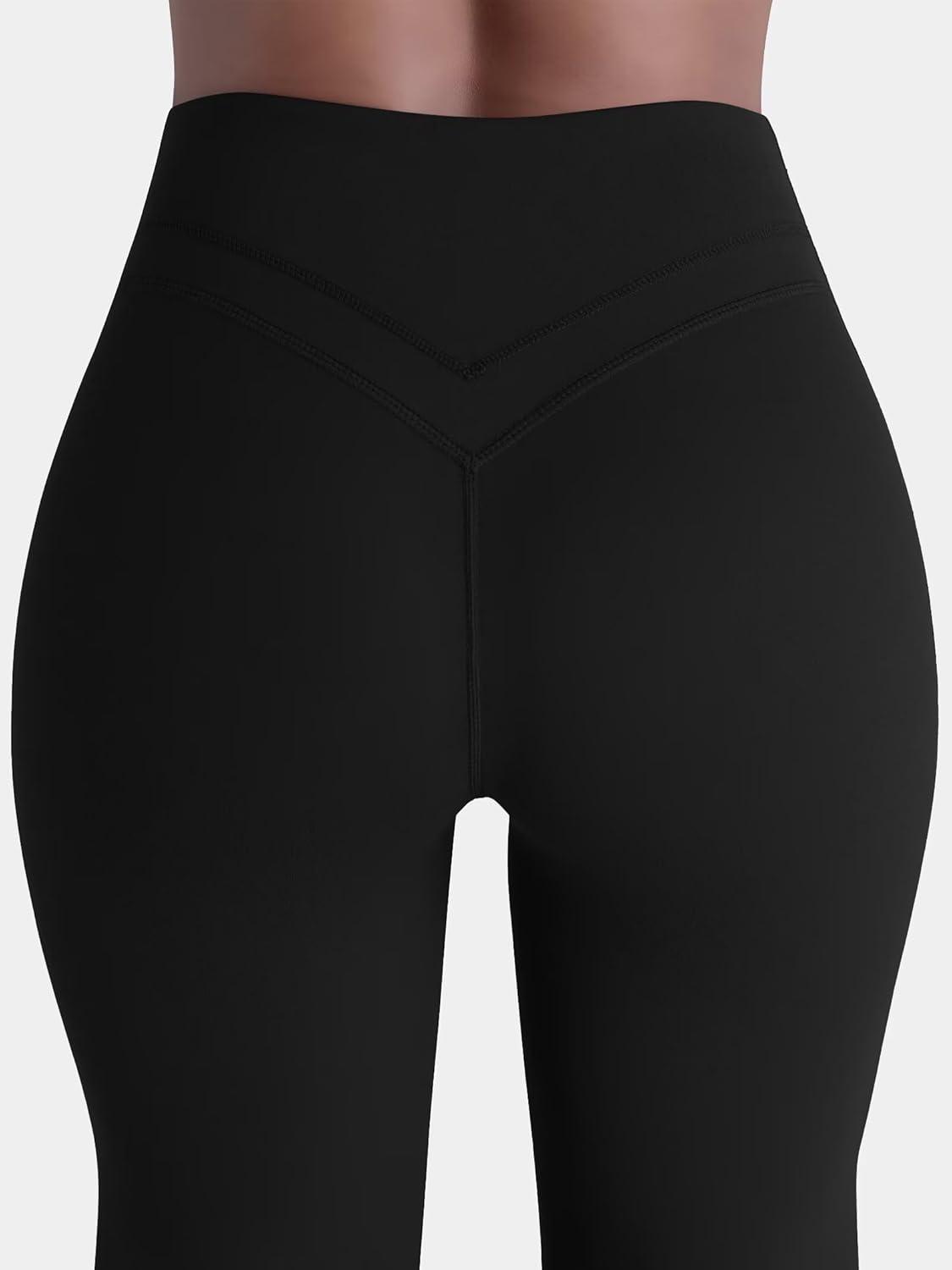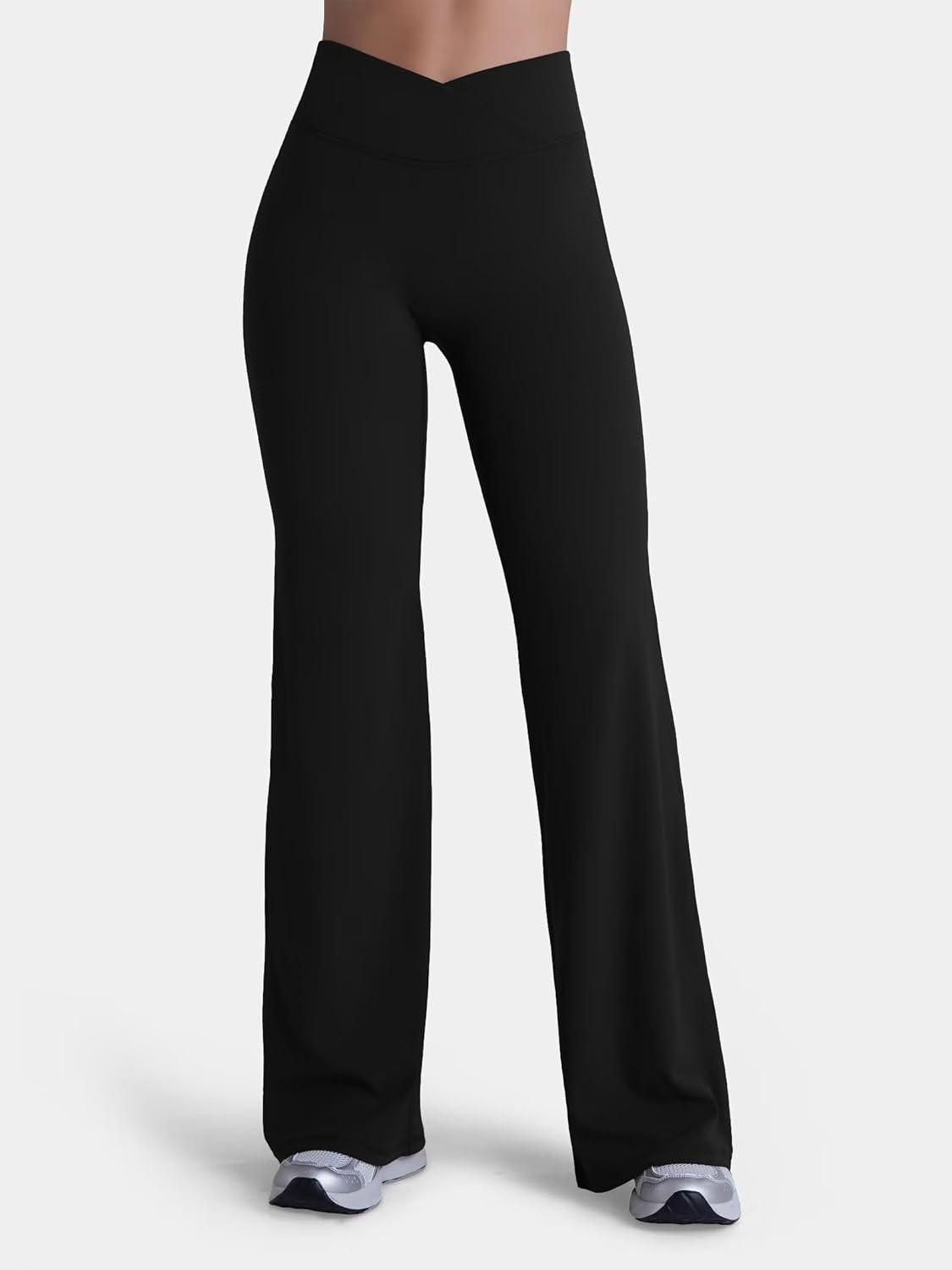 Sunzel Women Hidden Butt Lift Flare Yoga Pants No Front Seam V Crossover High Waist Flare Leg Lounge Workout Flared Leggings(Black)