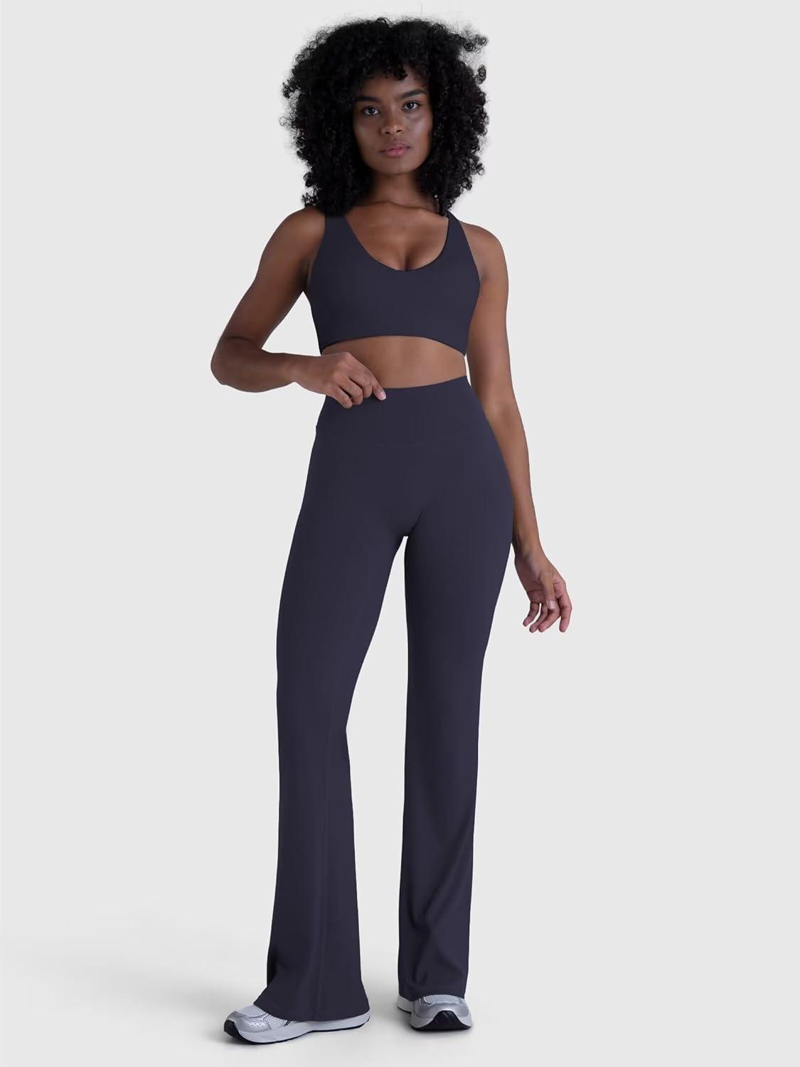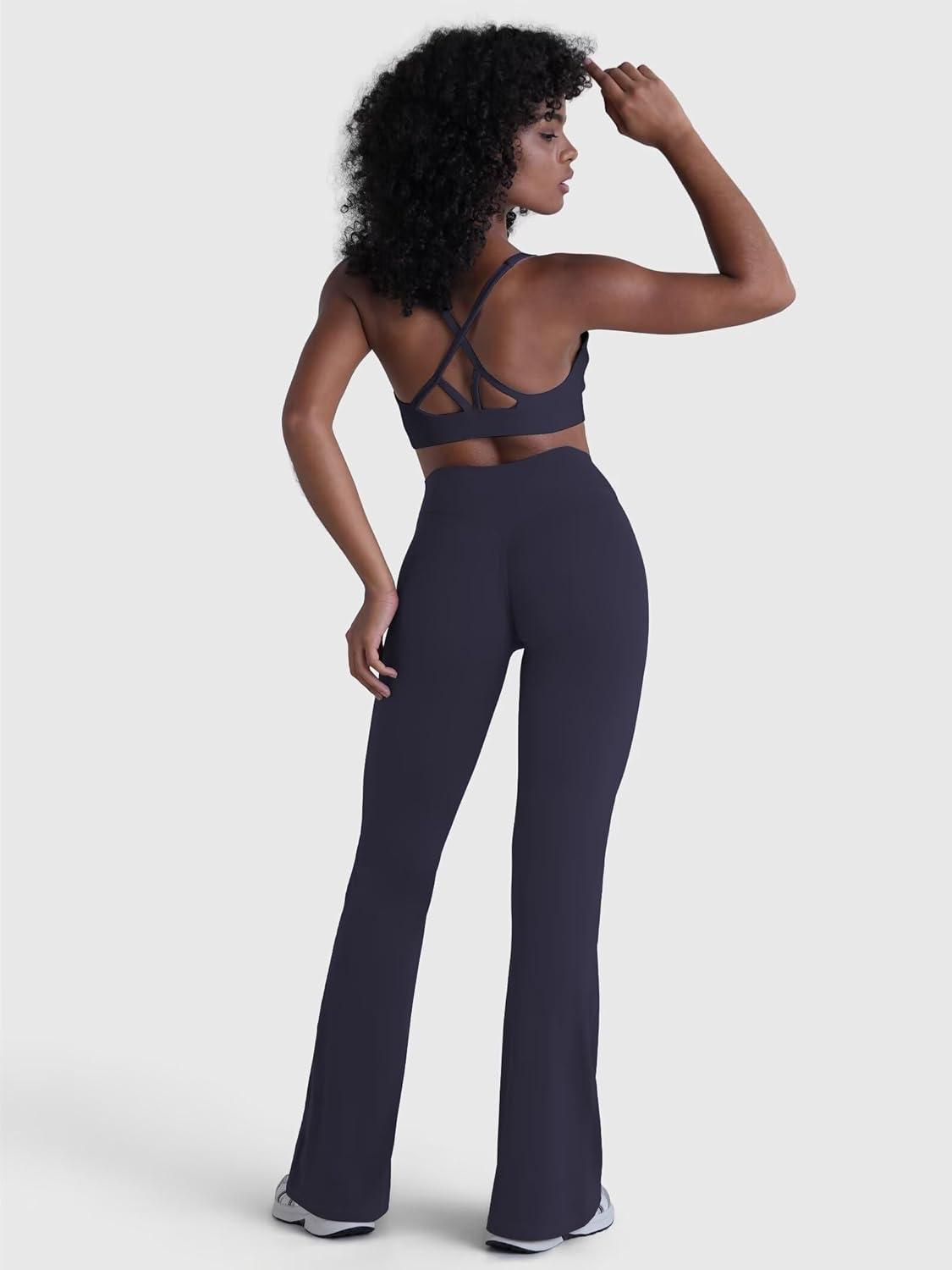 Sunzel Women’s Butt Lifting Flare Leggings High Waisted No Front Seam Tummy Control Workout Gym Yoga Pants Flared Bottoms(Ash Blue)