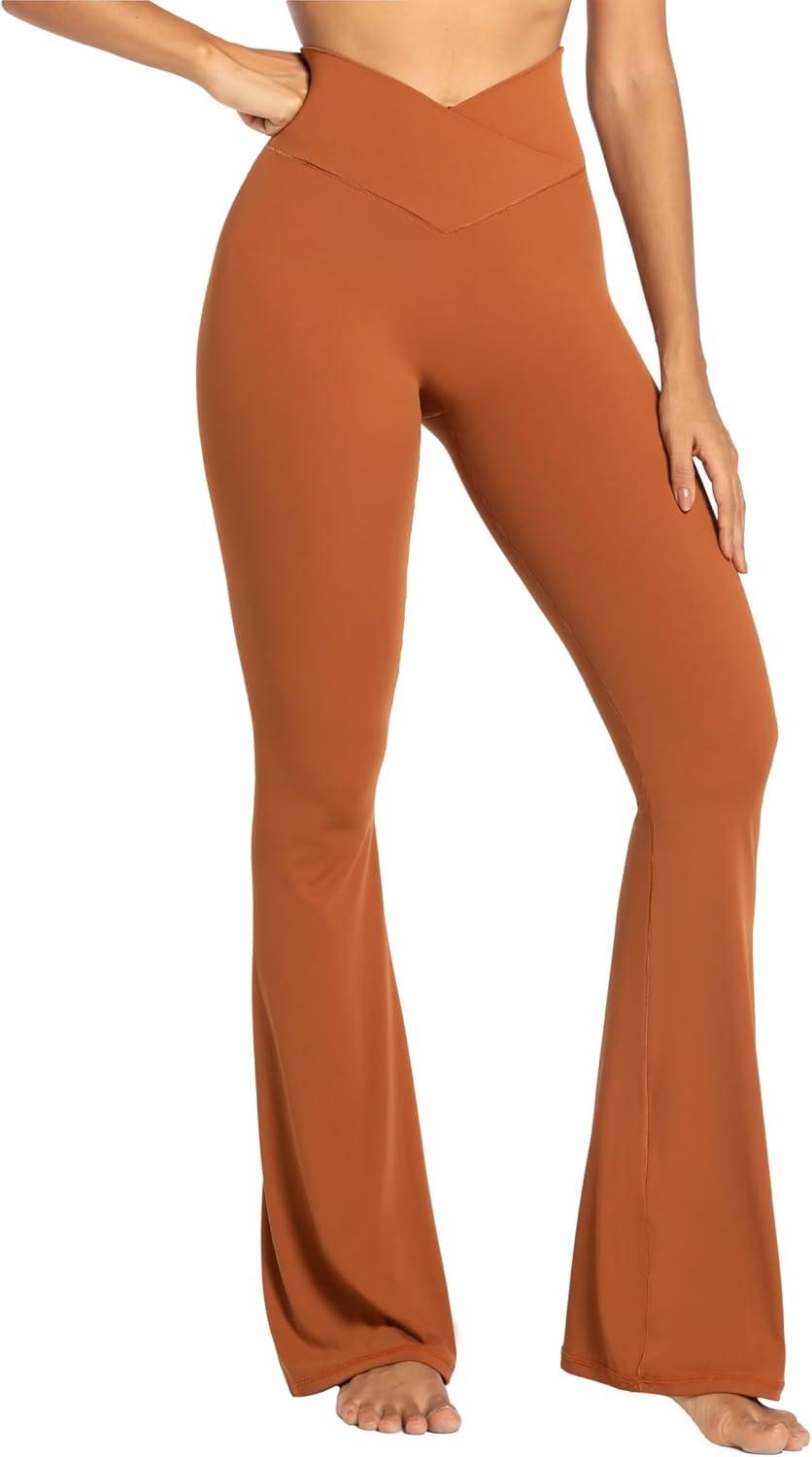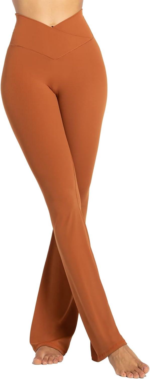 Sunzel Womens Flare Leggings No Front Seam Flare Yoga Pants with Tummy Control Crossover High Waist – 28″ / 30″ / 32″ / 34″(Caramel Cafe)
