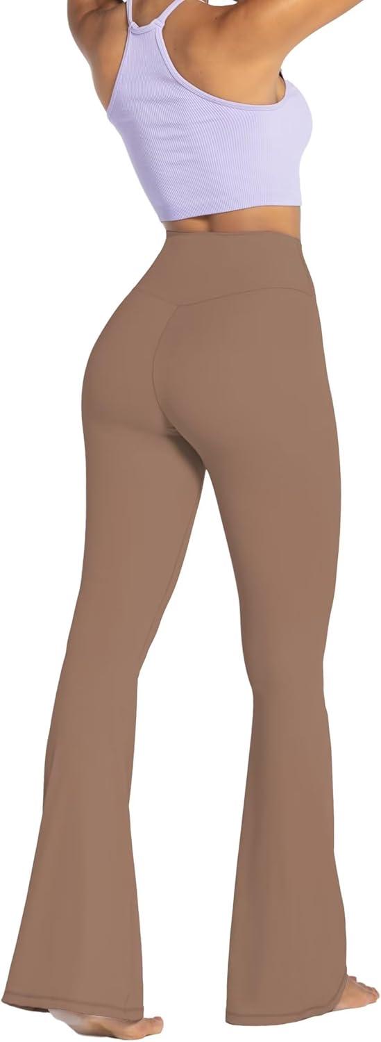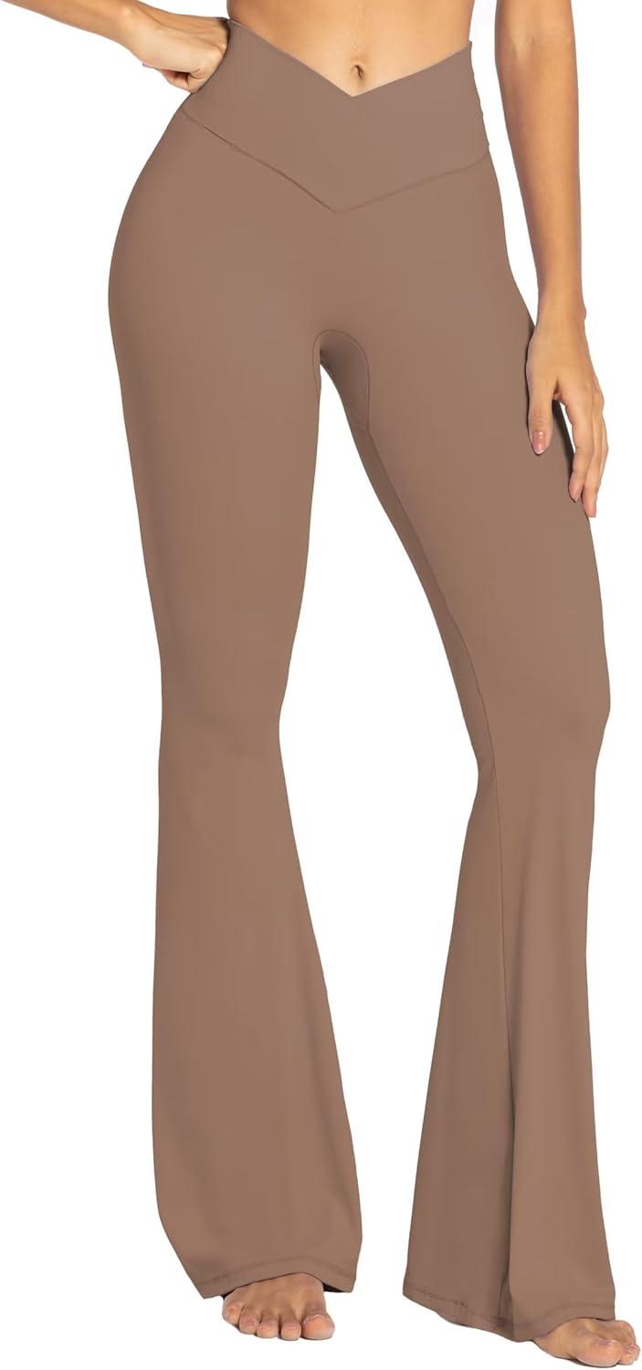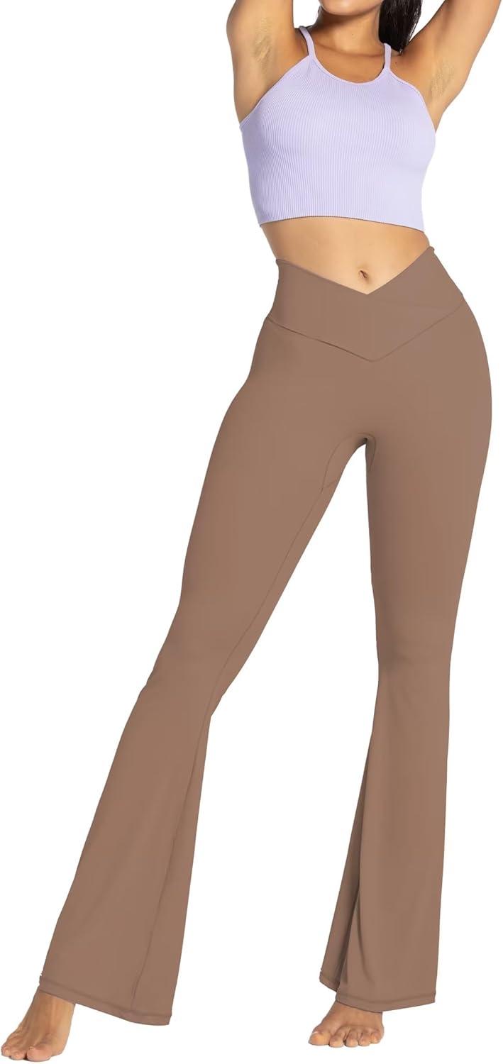 Sunzel Womens Flare Leggings No Front Seam Flare Yoga Pants with Tummy Control Crossover High Waist – 28″ / 30″ / 32″ / 34″(Coca Mocha)