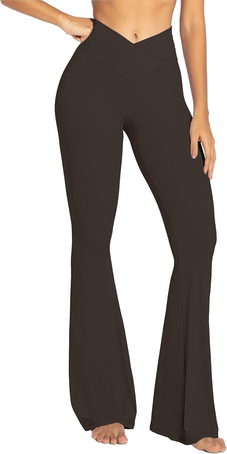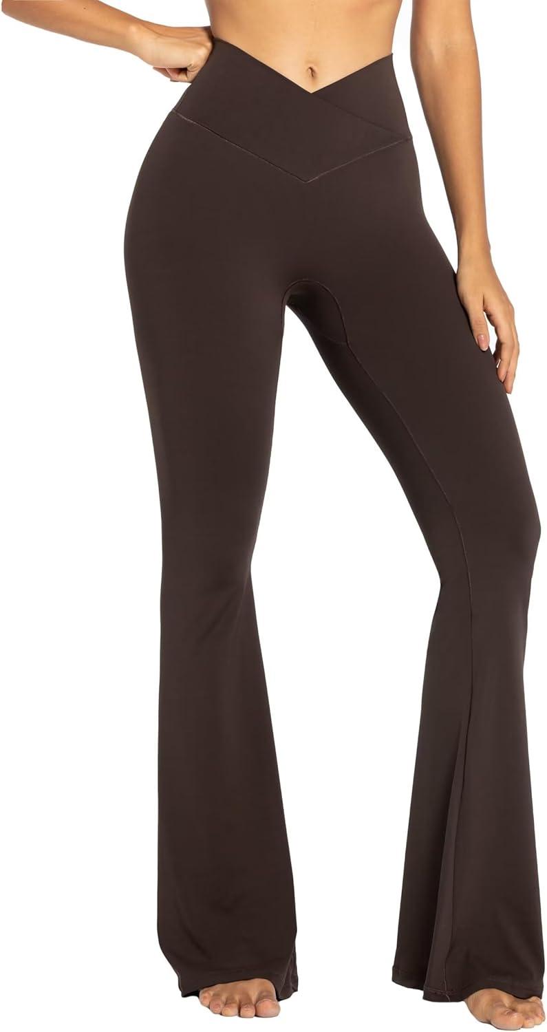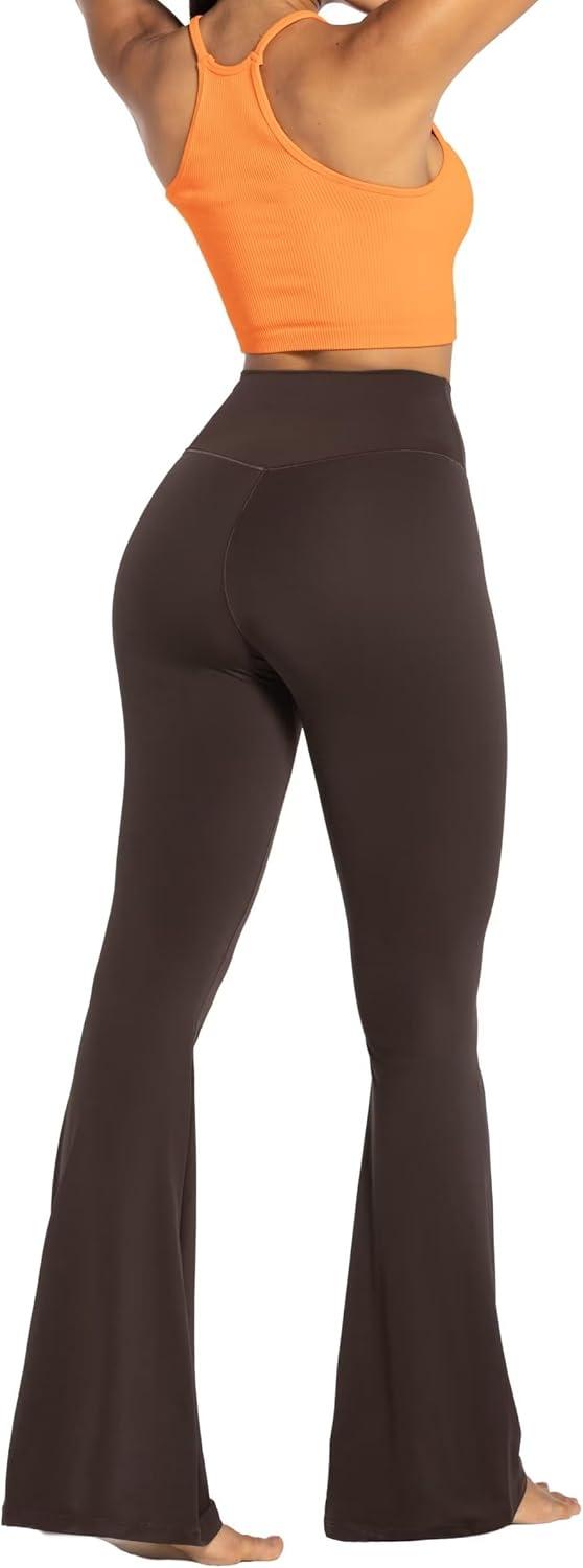 Sunzel Womens Flare Leggings No Front Seam Flare Yoga Pants with Tummy Control Crossover High Waist – 28″ / 30″ / 32″ / 34″(Java Brown)
