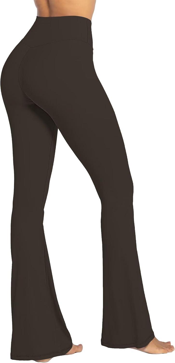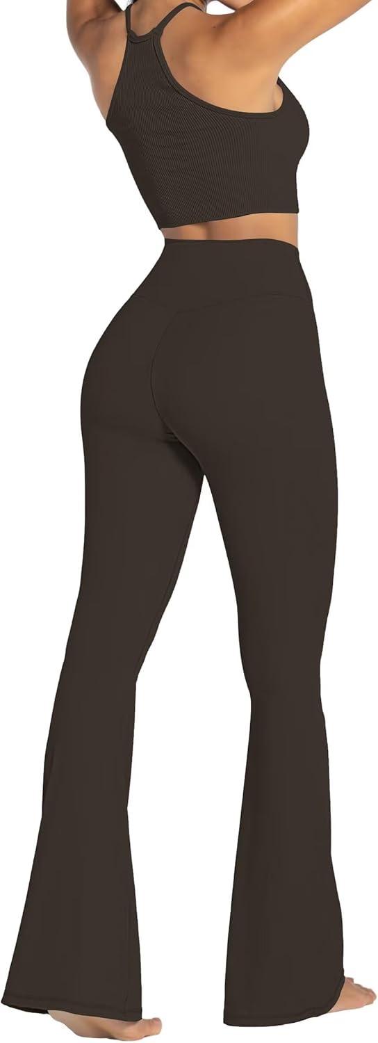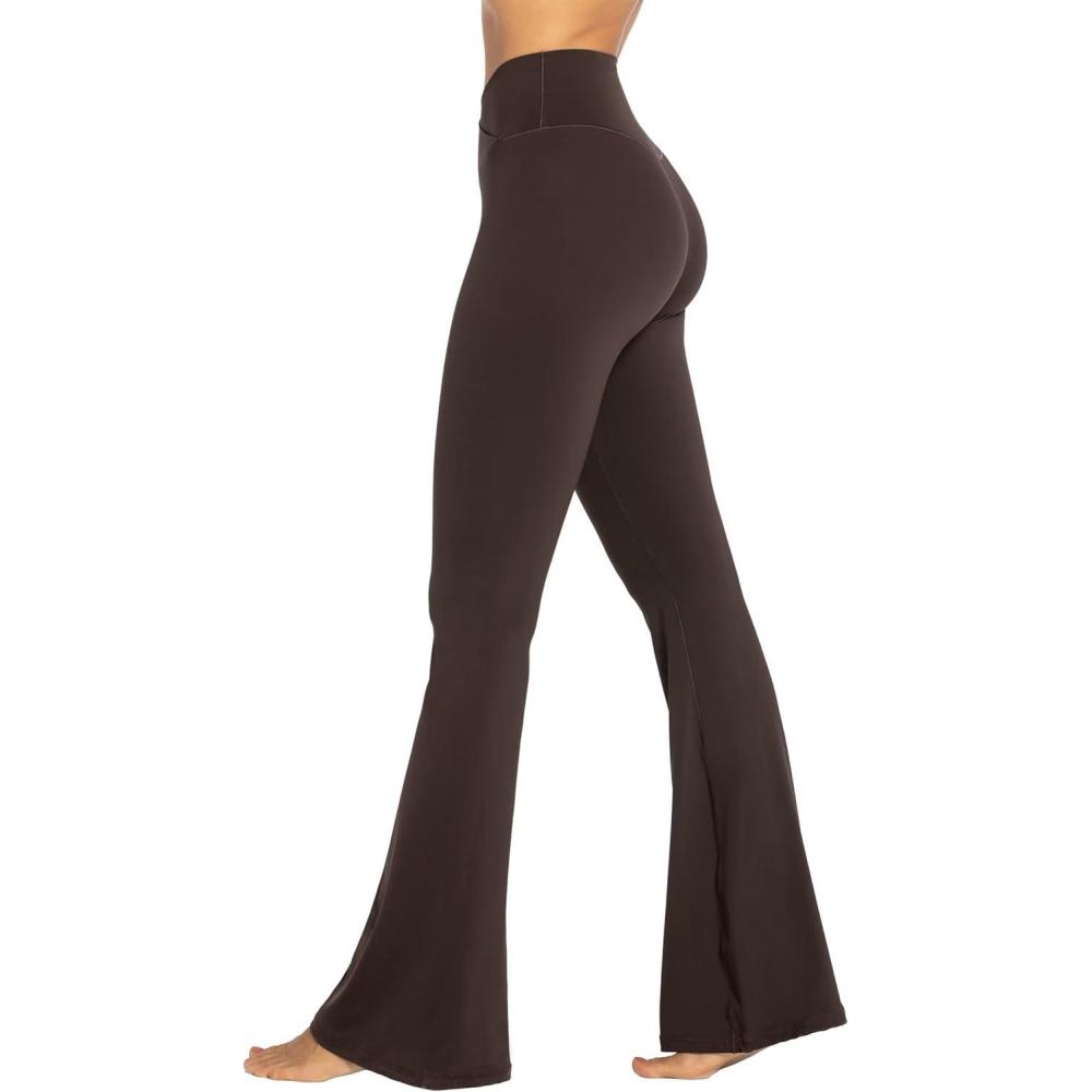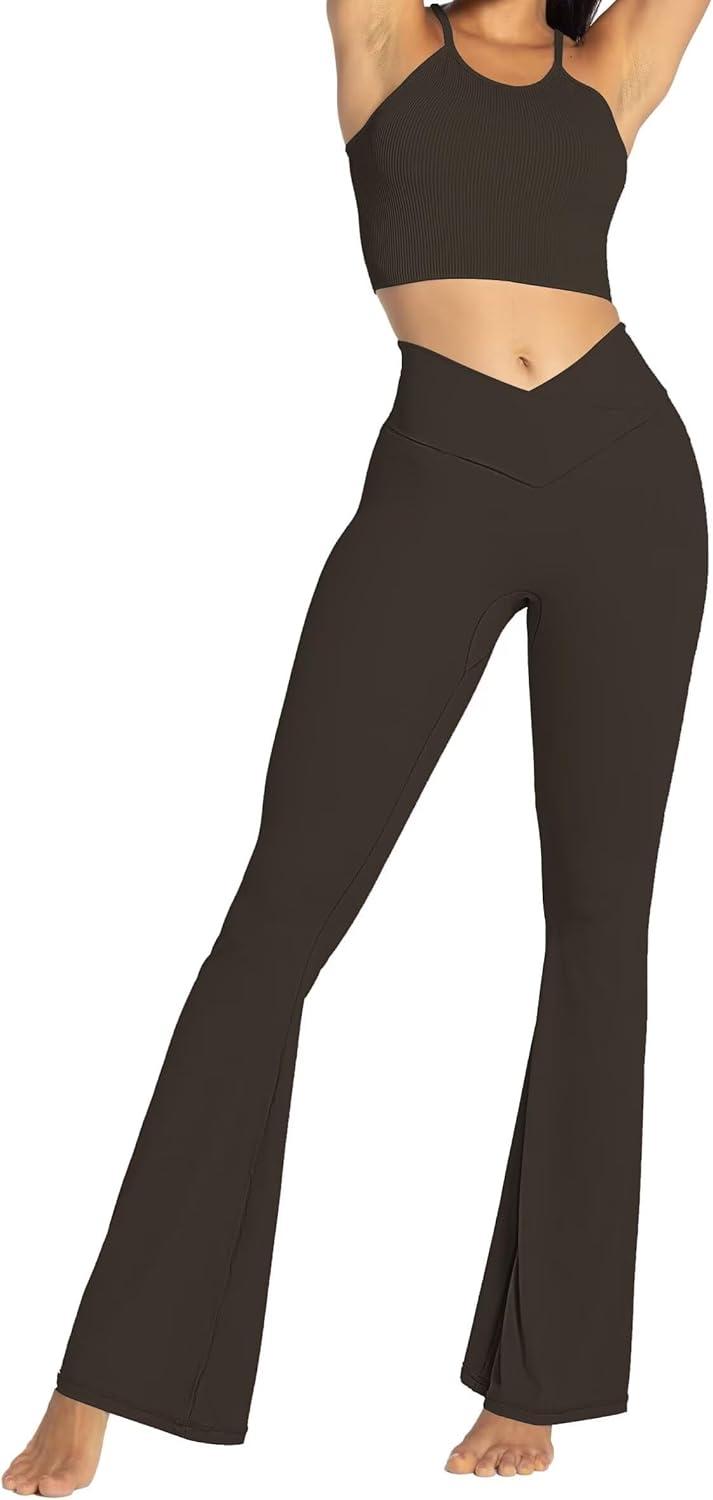Sunzel Womens Flare Leggings No Front Seam Flare Yoga Pants with Tummy Control Crossover High Waist – 28″ / 30″ / 32″ / 34″(Java Brown)