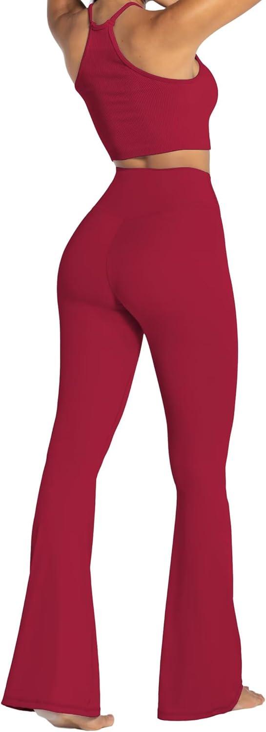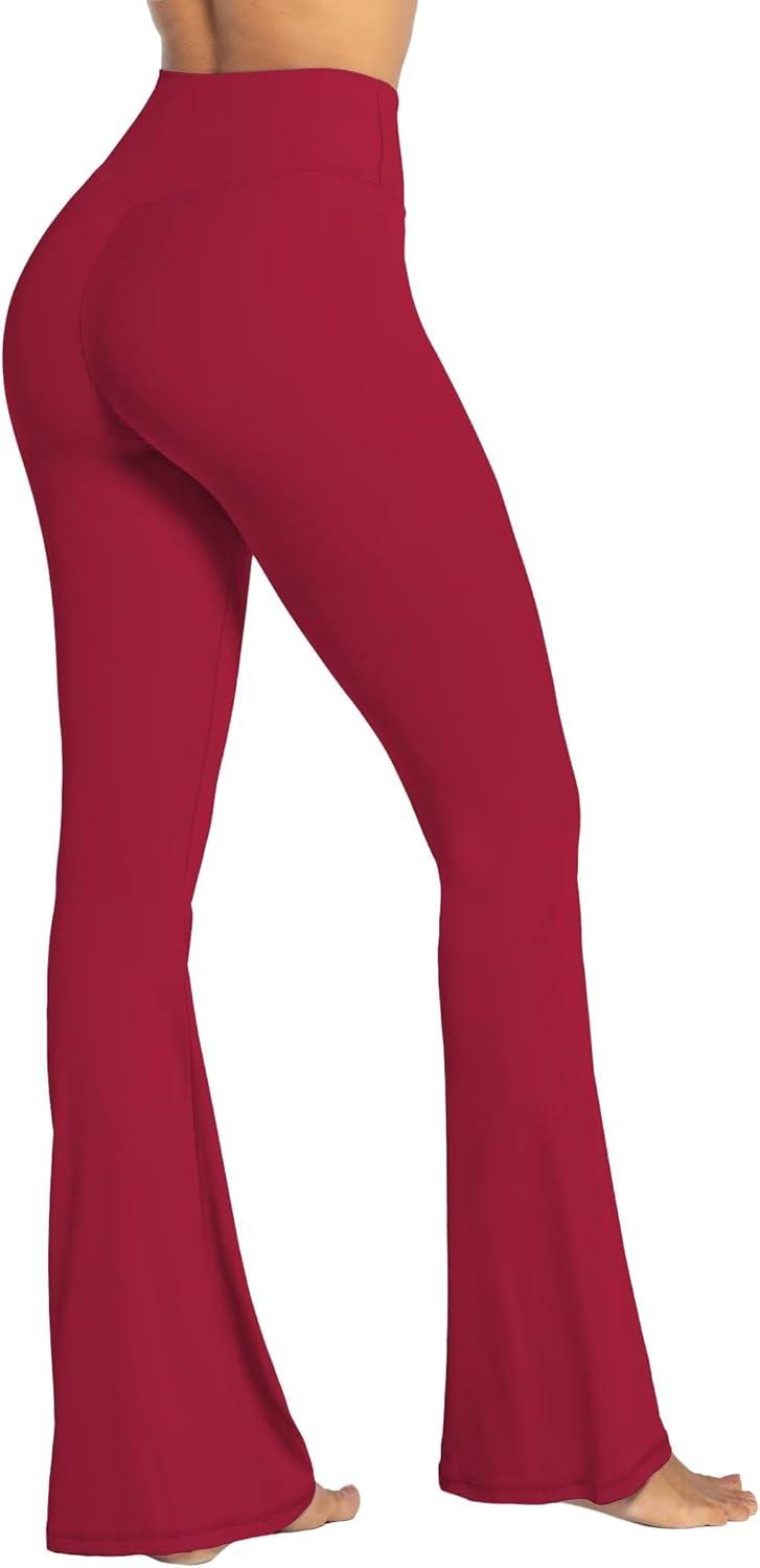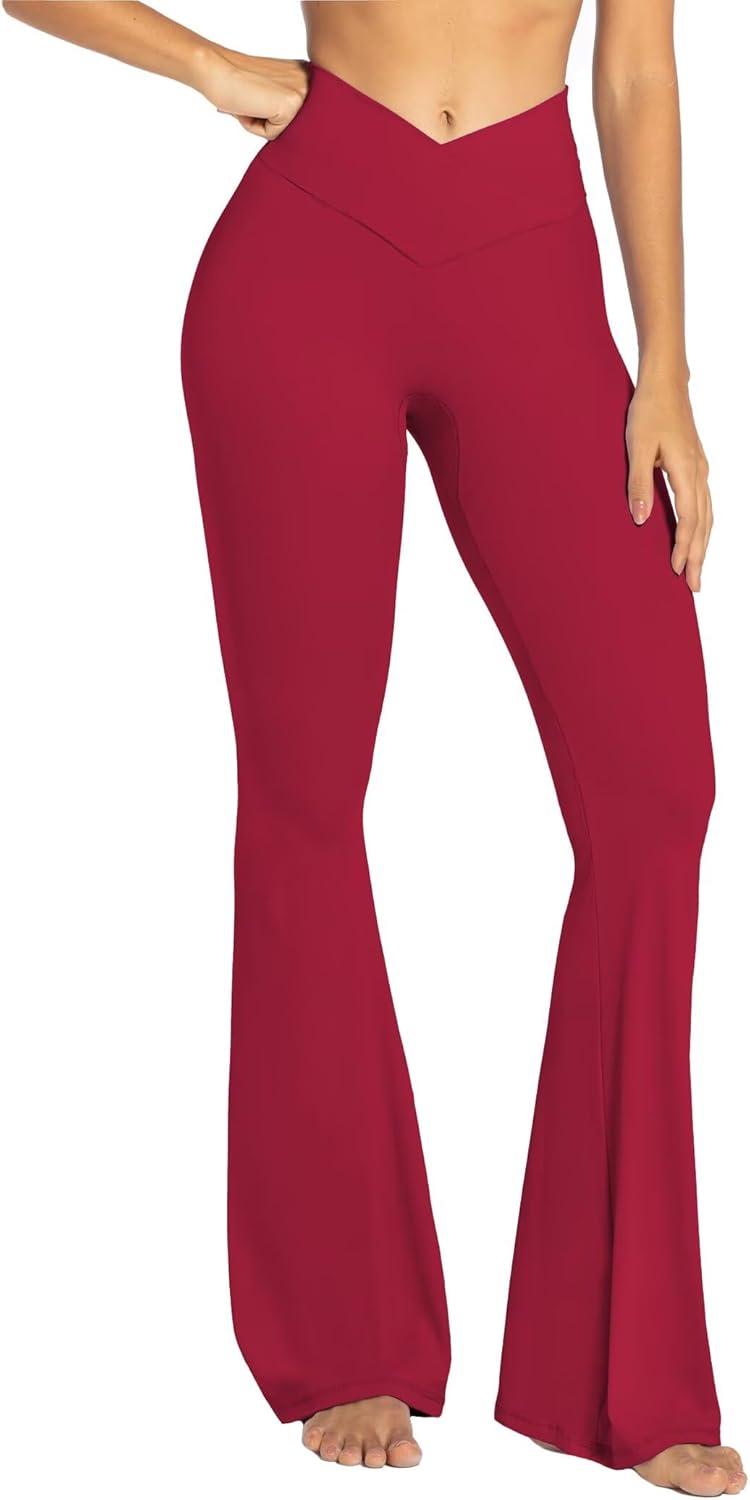 Sunzel Womens Flare Leggings No Front Seam Flare Yoga Pants with Tummy Control Crossover High Waist – 28″ / 30″ / 32″ / 34″(Cherry Red)