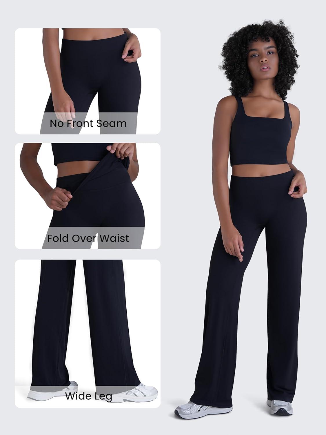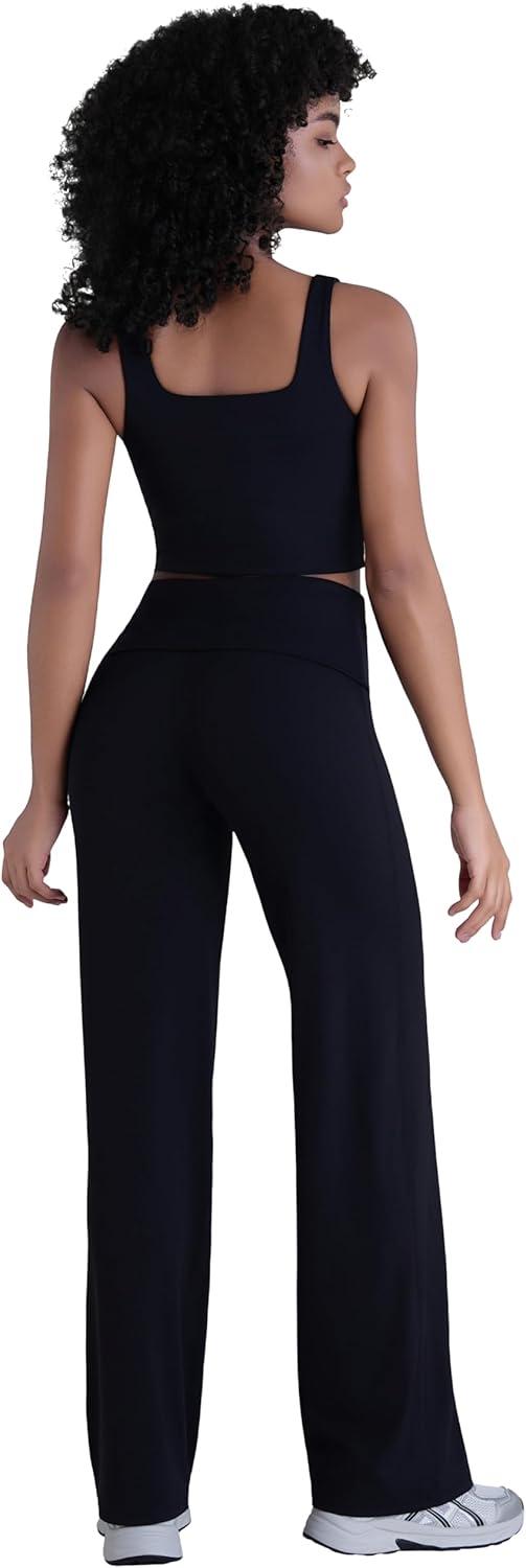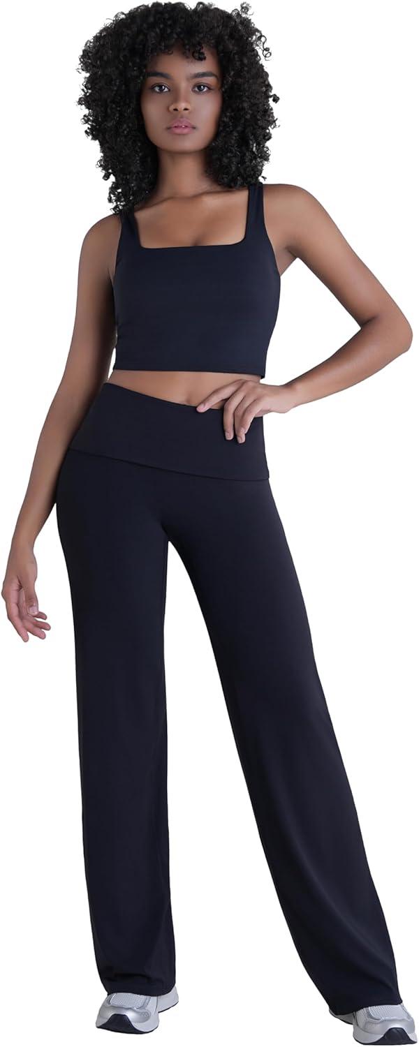 Sunzel Women’s Fold Over Wide Leg Yoga Pants No Front Seam Straight Leg Sweatpants High Waisted Lounge Casual Stretch Workout(Black)