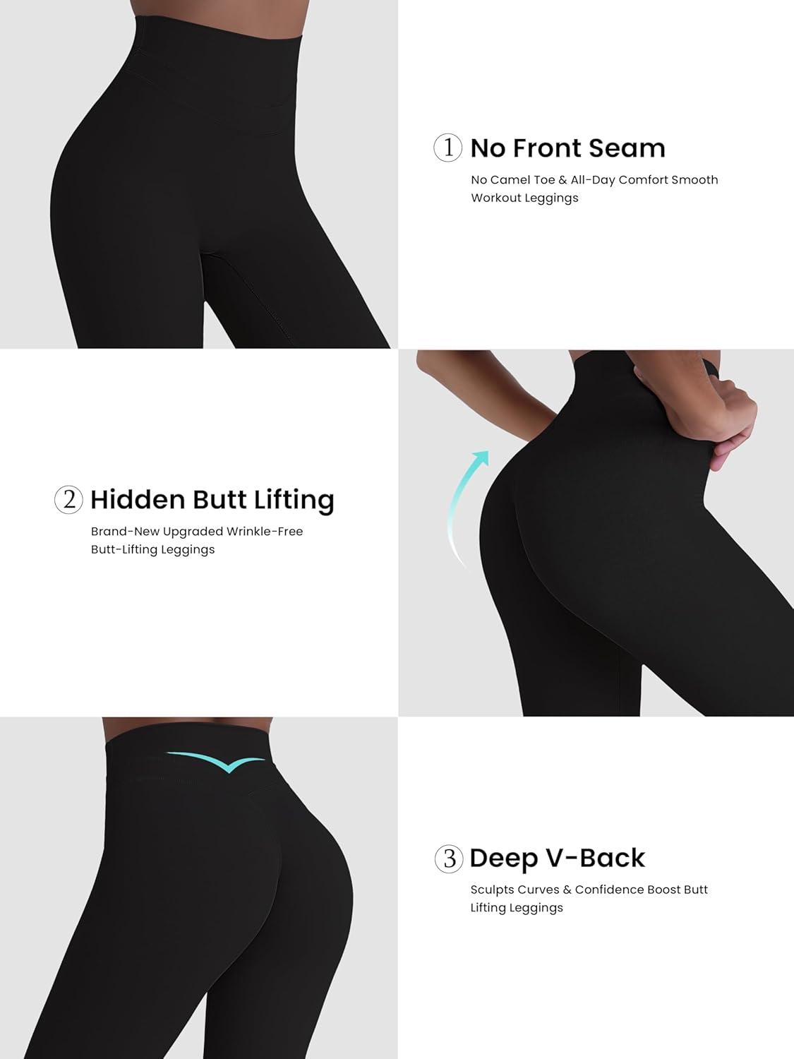 Sunzel Women’s Hidden Butt Lifting Leggings No Front Seam High Waist Yoga Pants with Tummy Control Workout Gym Running Casual(Black)