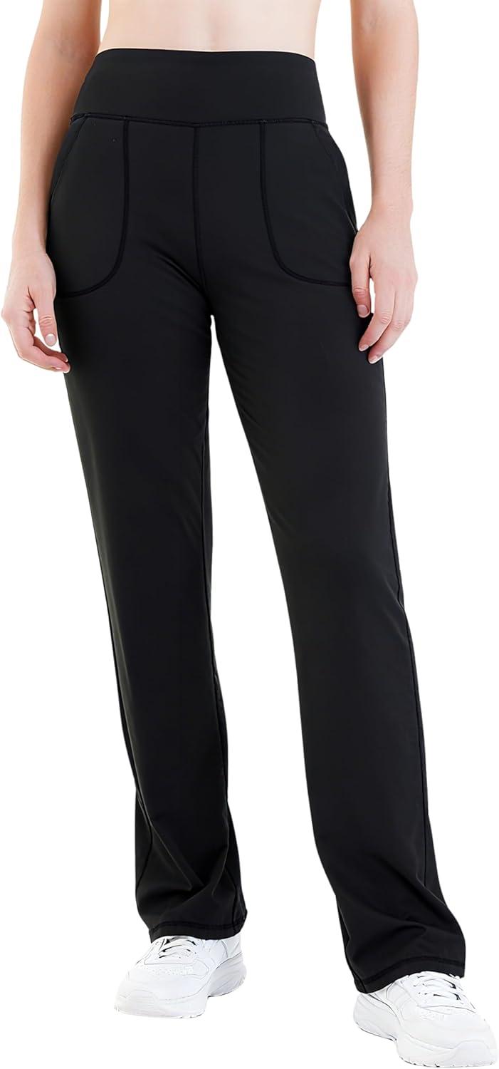 Sunzel Women’s High Waist Wide Leg Yoga Pants with Pockets Stretchy Loose Lounge Workout Casual Straight Leg Pants(Black)