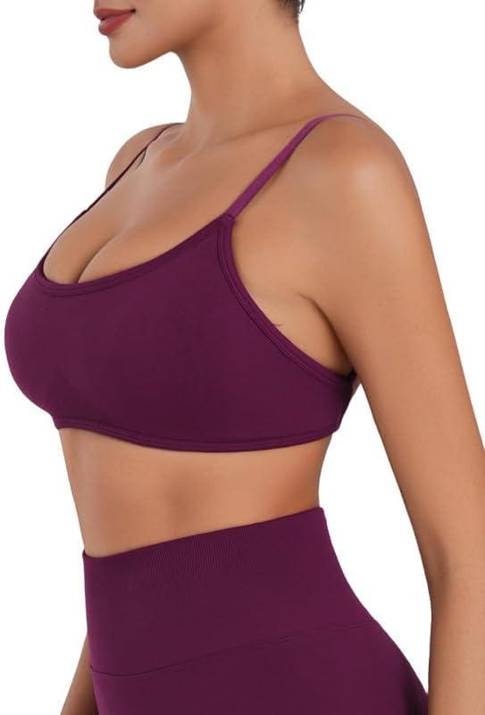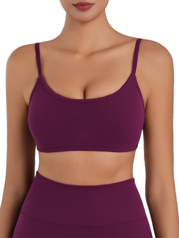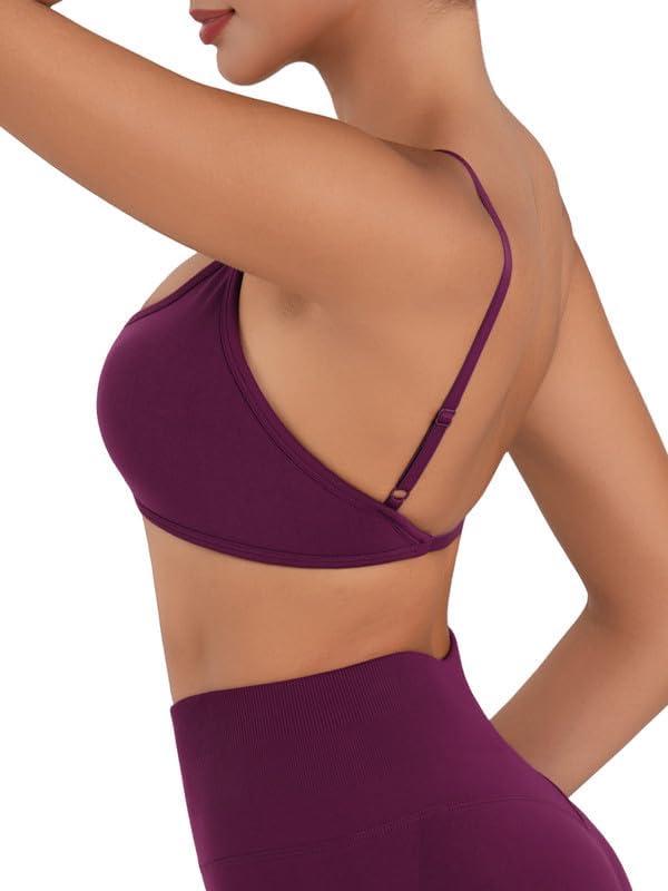 Sunzel Women’s Open Back Sports Bra Adjustable Spaghetti Strap Seamless Low Impact Workout Gym Yoga Bra with Removable Pads(Purple)