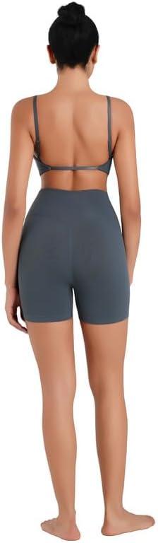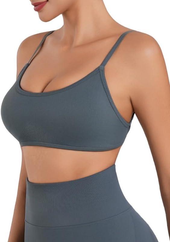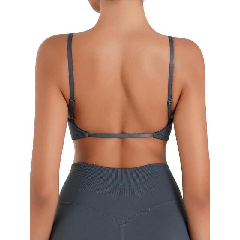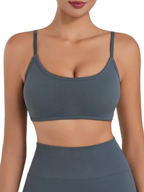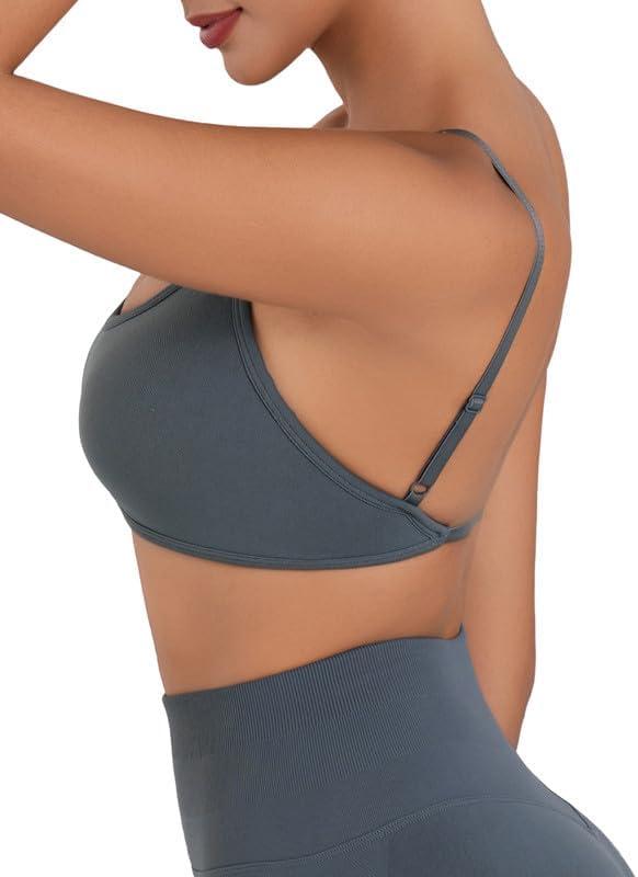 Sunzel Women’s Open Back Sports Bra Adjustable Spaghetti Strap Seamless Low Impact Workout Gym Yoga Bra with Removable Pads(Storm Grey)