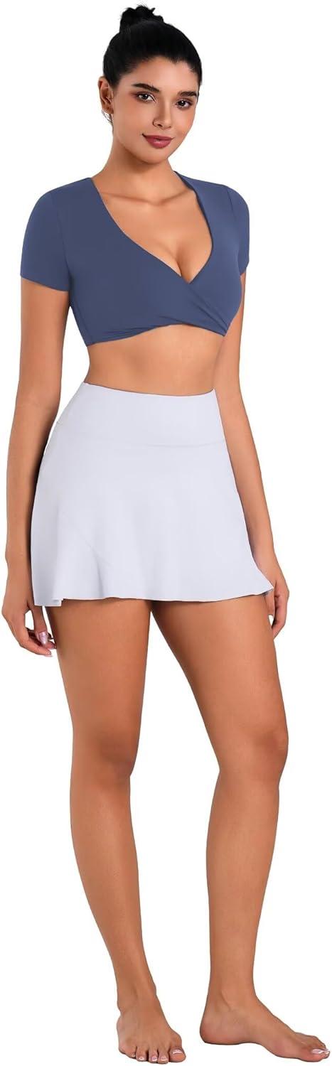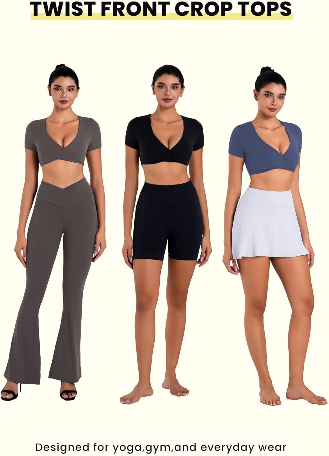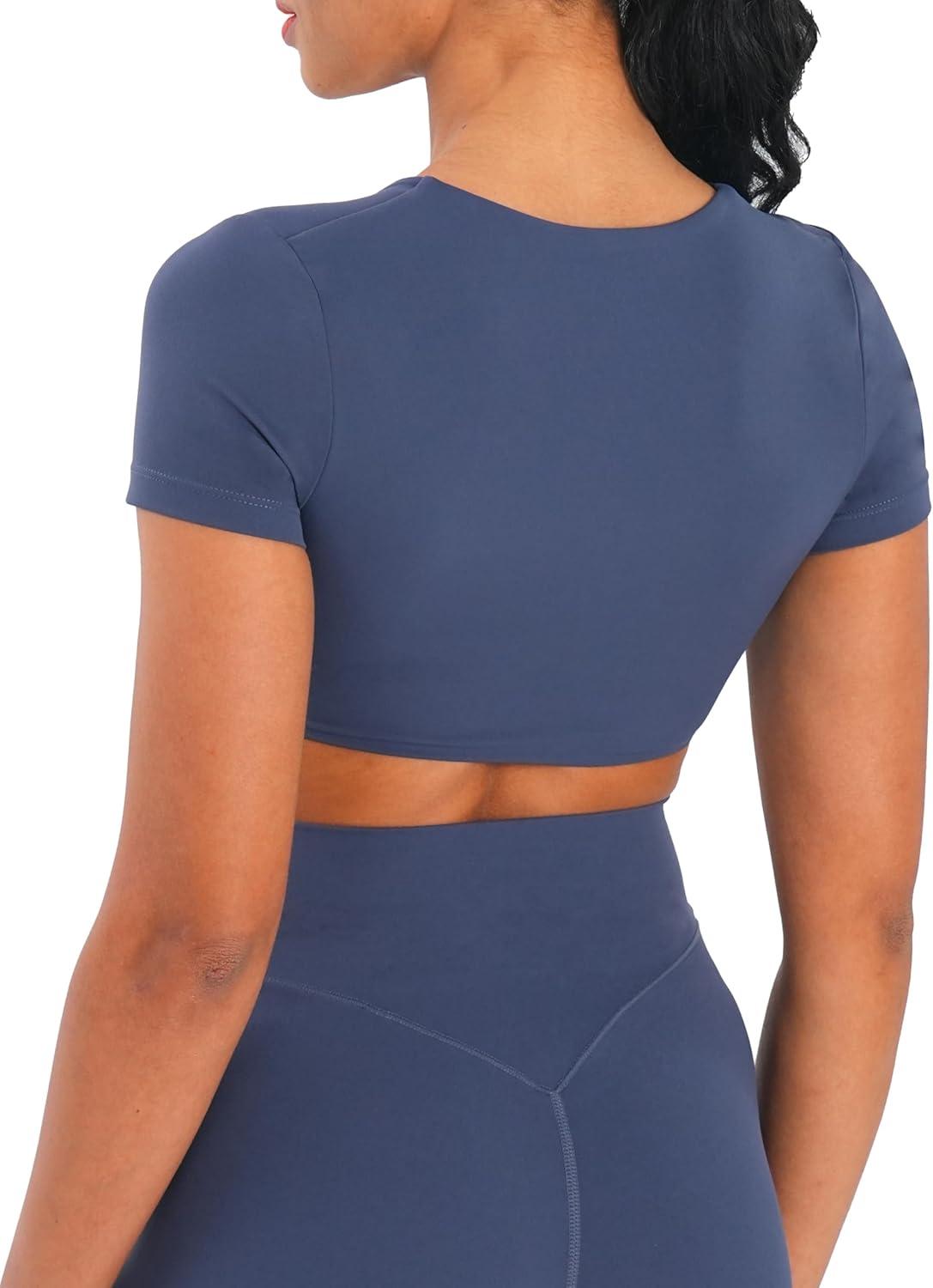 Sunzel Women’s Twist Deep V Workout Tops Summer Crop Gym Tops Buttery Soft Short Sleeve Shirts for Yoga Athletic Pilates(Ash Blue)